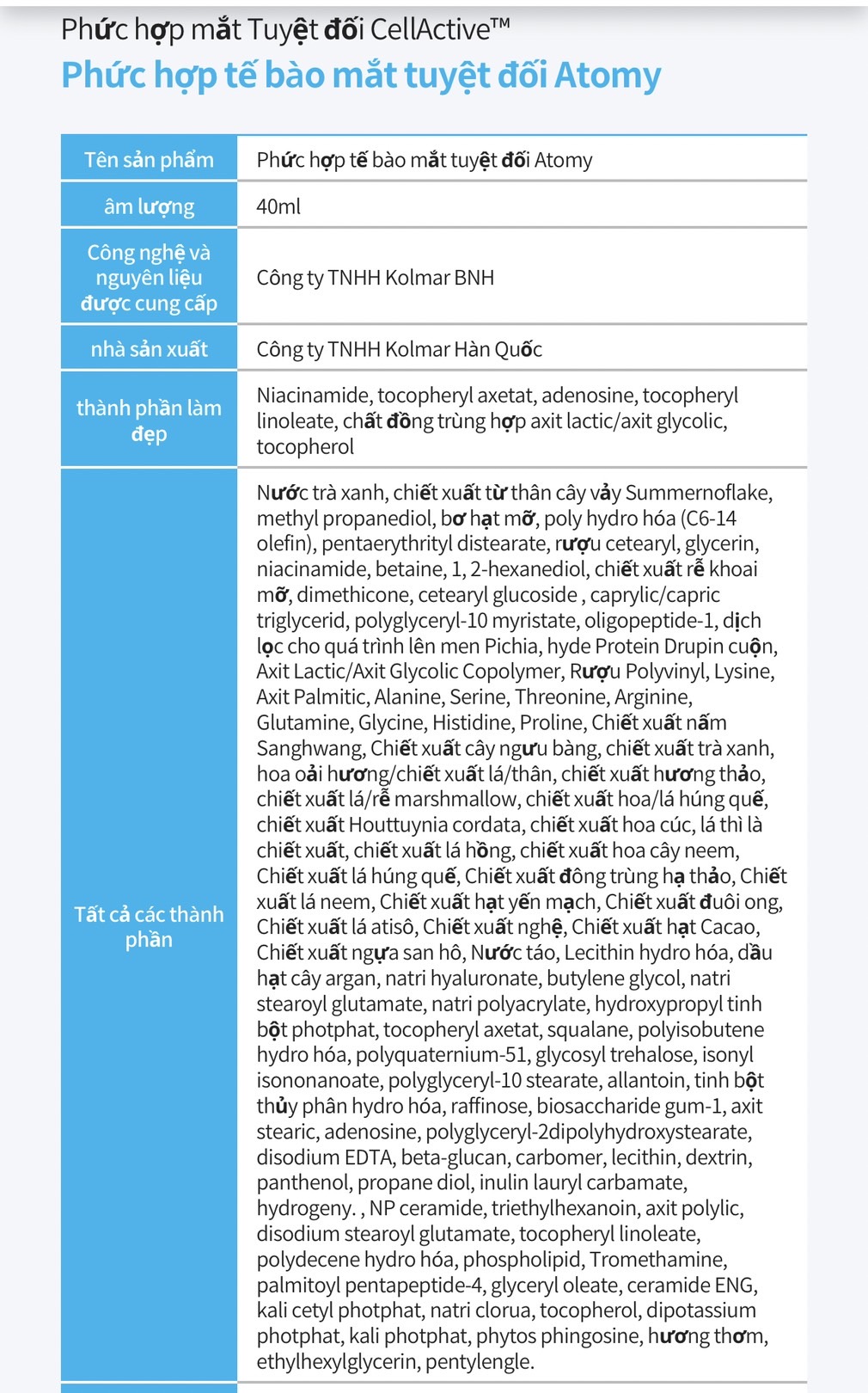 Kem dưỡng mắt Atom giảm nhăn, thâm quầng và bọng mắt (loại cao cấp trong set 6) - Atomy Absolute Cellactive Eye Cream 40 ml - 애터미 앱솔루트 셀랙티브 아이컴플렉스 - Атоми СеллАктив крем для кожи вокруг глаз