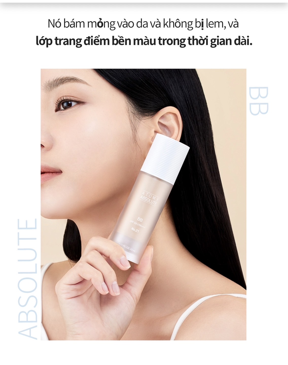 Kem nền chống tia UV cực mạnh SPF50+ PA++++, bám dính cao, không vón cục, dưỡng ẩm và dưỡng trắng da hoàn hảo No.21 (màu tự nhiên) - Atomy BB Absolute 21 - 애터미 앱솔루트 BB - Атоми Абсолют BB №21