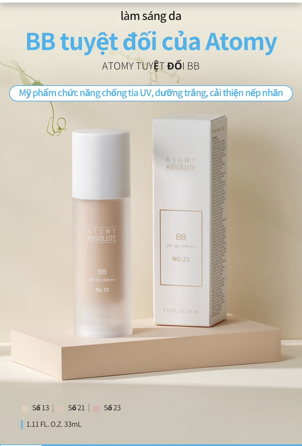 Kem nền chống tia UV cực mạnh SPF50+ PA++++, bám dính cao, không vón cục, dưỡng ẩm và dưỡng trắng da hoàn hảo No.23 (màu beige) - Atomy BB Absolute 23 - 애터미 앱솔루트 BB - Атоми Абсолют BB №23