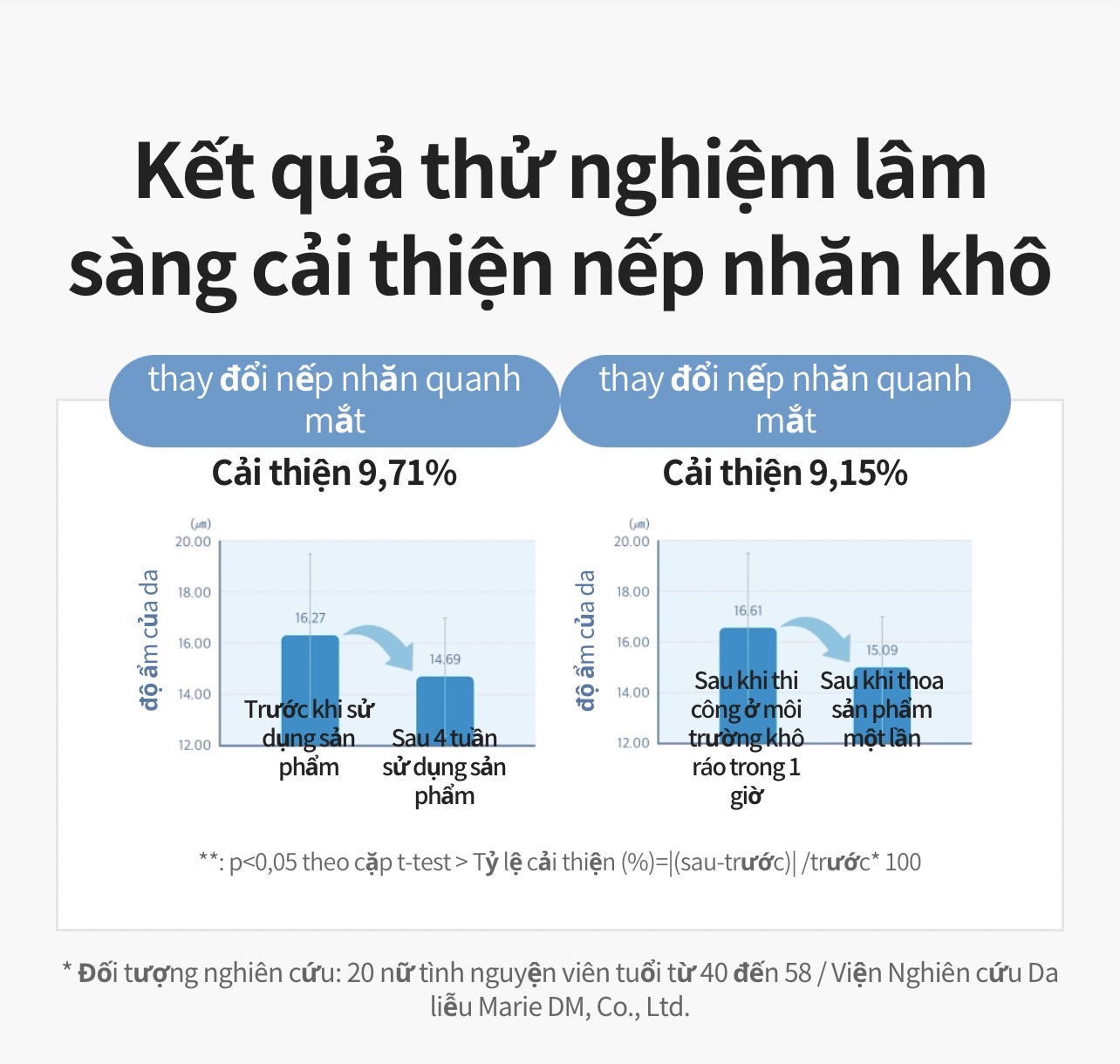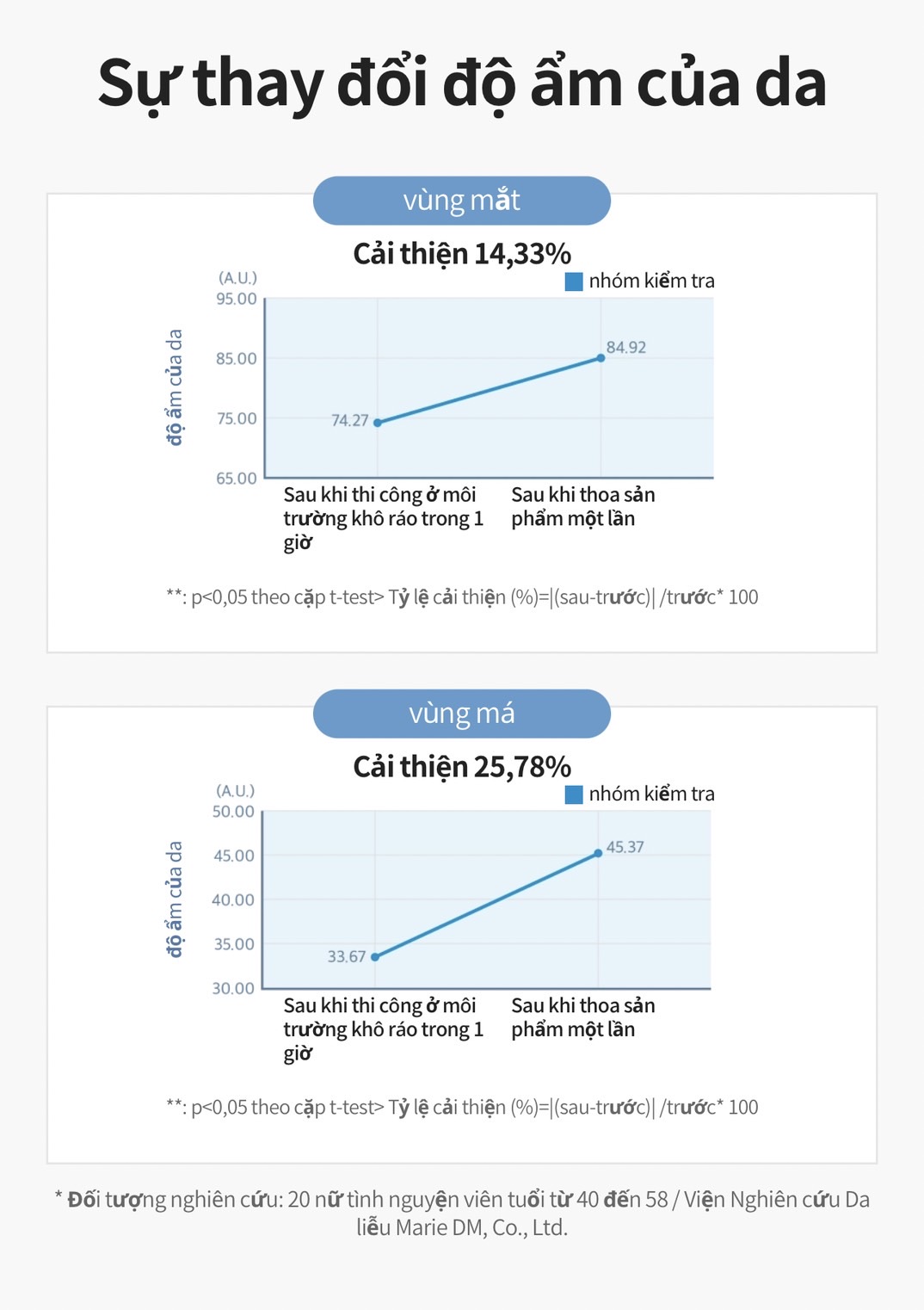 ✅ Tăng độ ẩm bề mặc da đến 456% và độ ẩm của lớp da thứ 12 tăng 112%