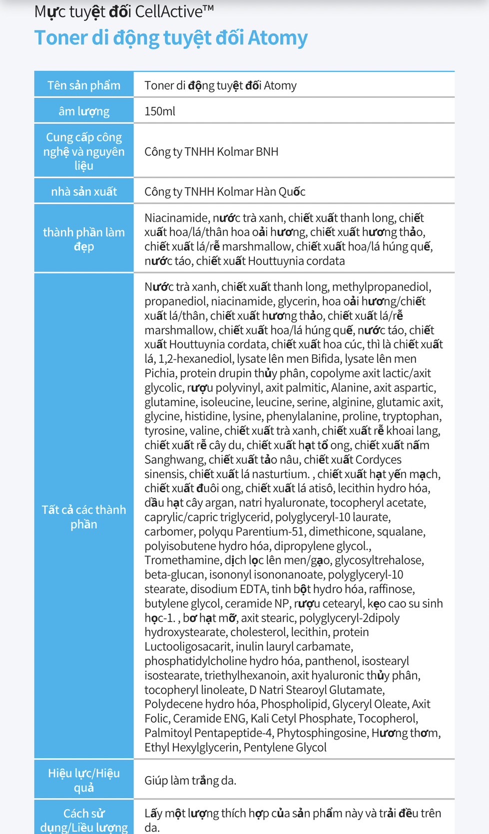 Là bước dưỡng da đầu tiên trong bộ sản phẩm Atomy Absolute Cellactive Skincare Set (sau bước rửa mặt). Thắm nước hoa hồng này vào bông tẩy trang rồi xoa đều lên mặt, cổ, quanh vùng mắt, để khô rồi thực hiện các bước dưỡng da tiếp theo.