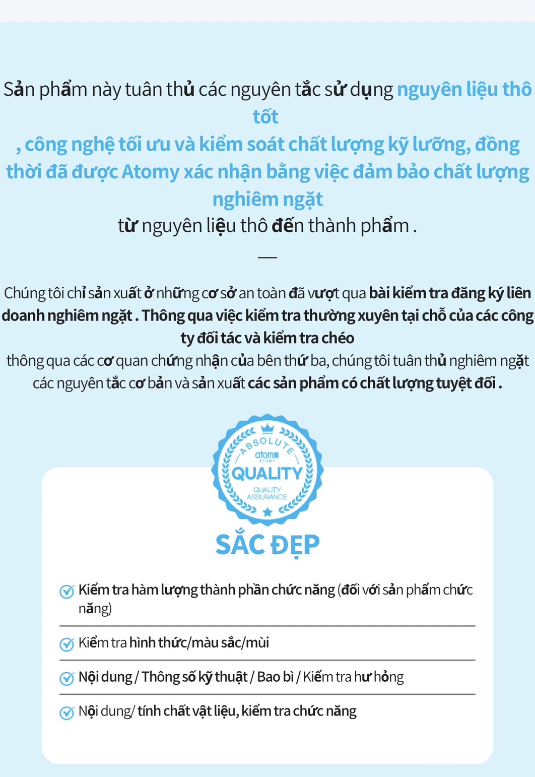 - Nghiên cứu được cấp bằng sáng chế Potentilla Extract AC, Giải pháp AC 10, và Khu phức hợp Nước Calming đã được cải tiến và được phát triển bởi công nghệ chung của Atomy và Kolmar Korea.