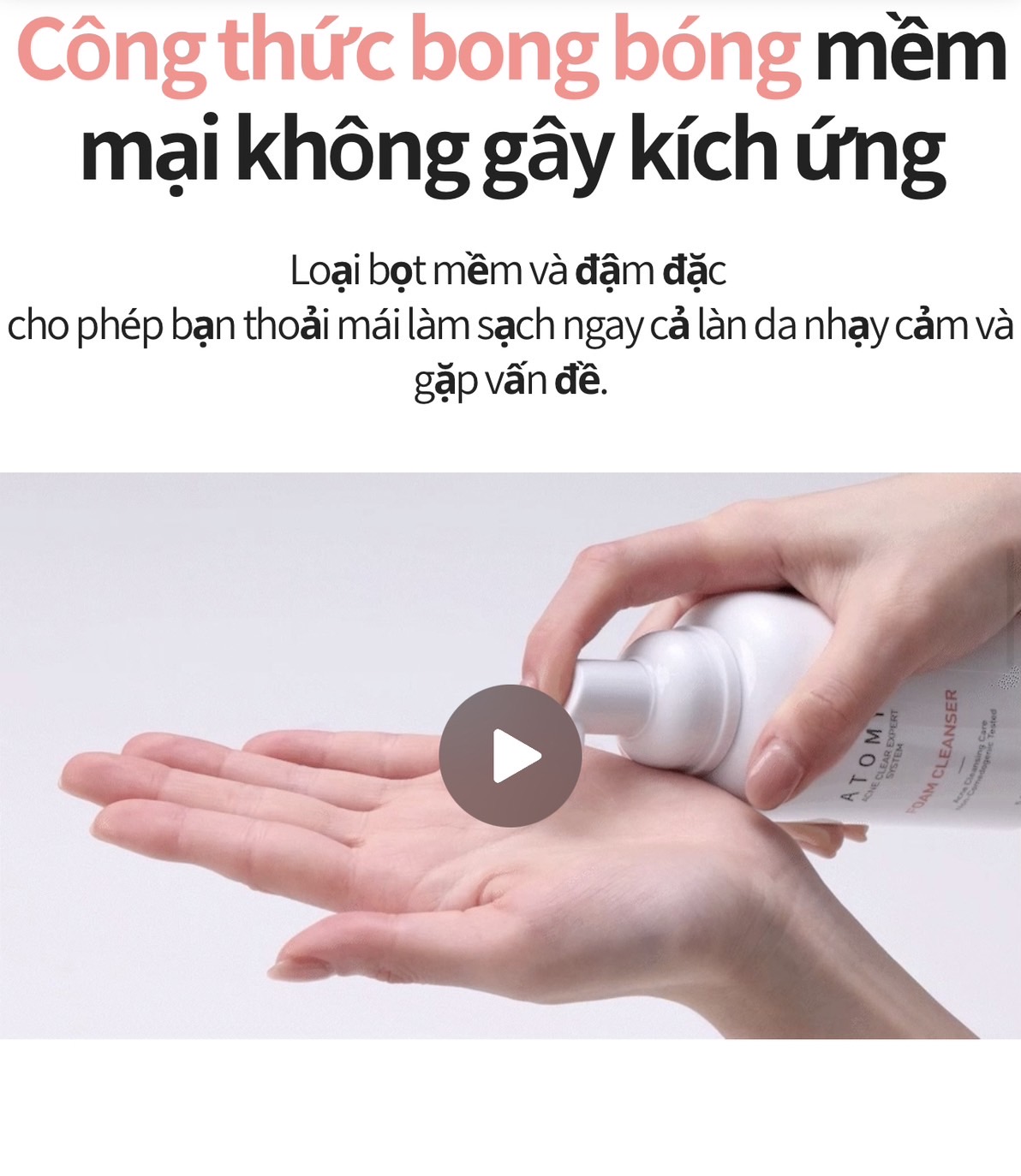 Sản phẩm rửa mặt dạng bọt tạo sẵn. chỉ cần bom vào lòng bàn tay rồi thoa đều lên mặt, chờ axit salicylic kích hoạt và làm sạch tận lỗ chân lông.