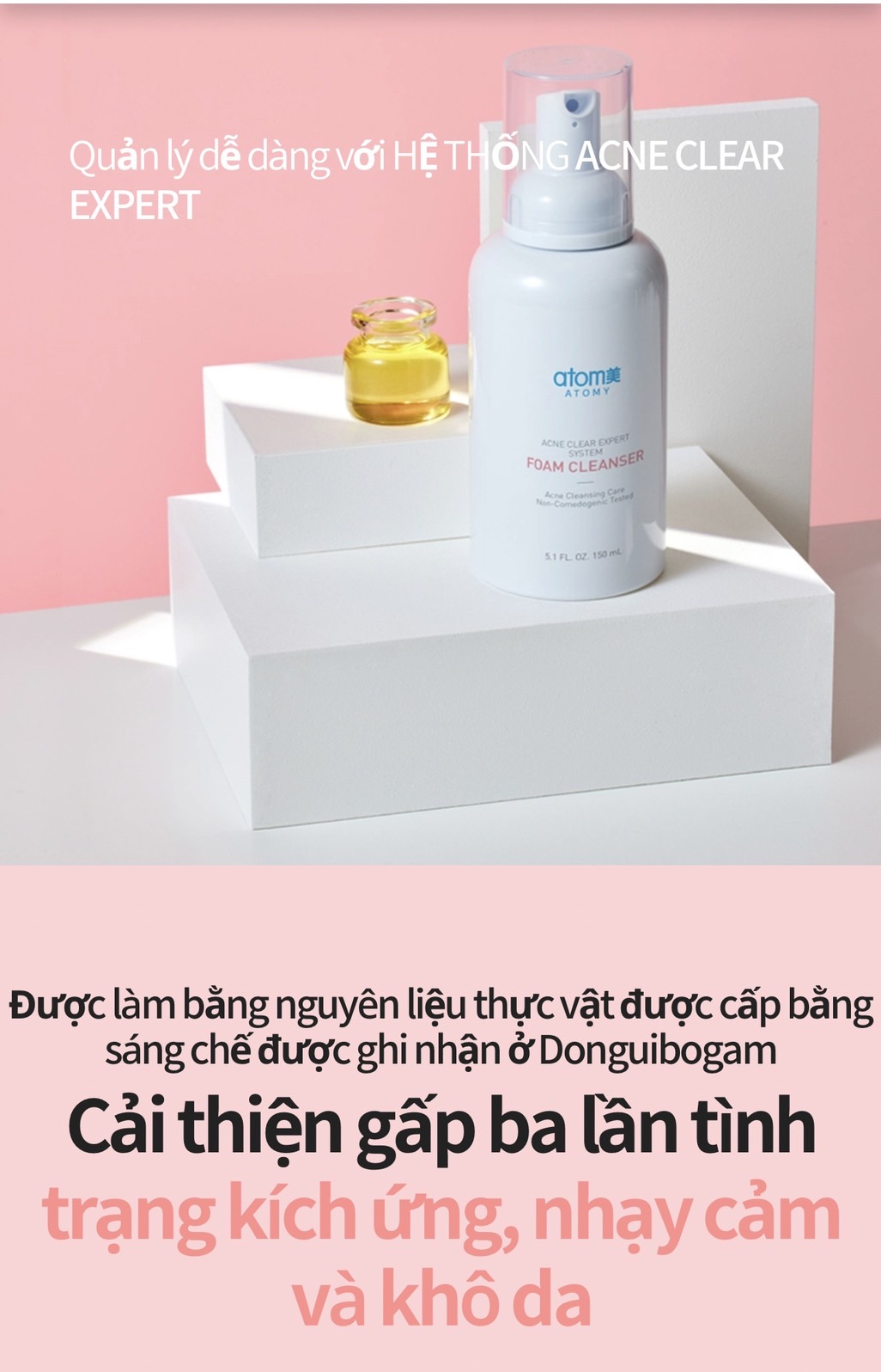 - Lý do tại sao Atomy Acne Clear Expert System là một sản phẩm tuyệt vời là vì nó cung cấp một giải pháp cơ bản để chăm sóc mụn và sửa chữa da. Nó chứa bằng sáng chế hoạt chất và các chất tự nhiên. Và tác dụng của nó đã được thử nghiệm lâm sàng khác nhau.