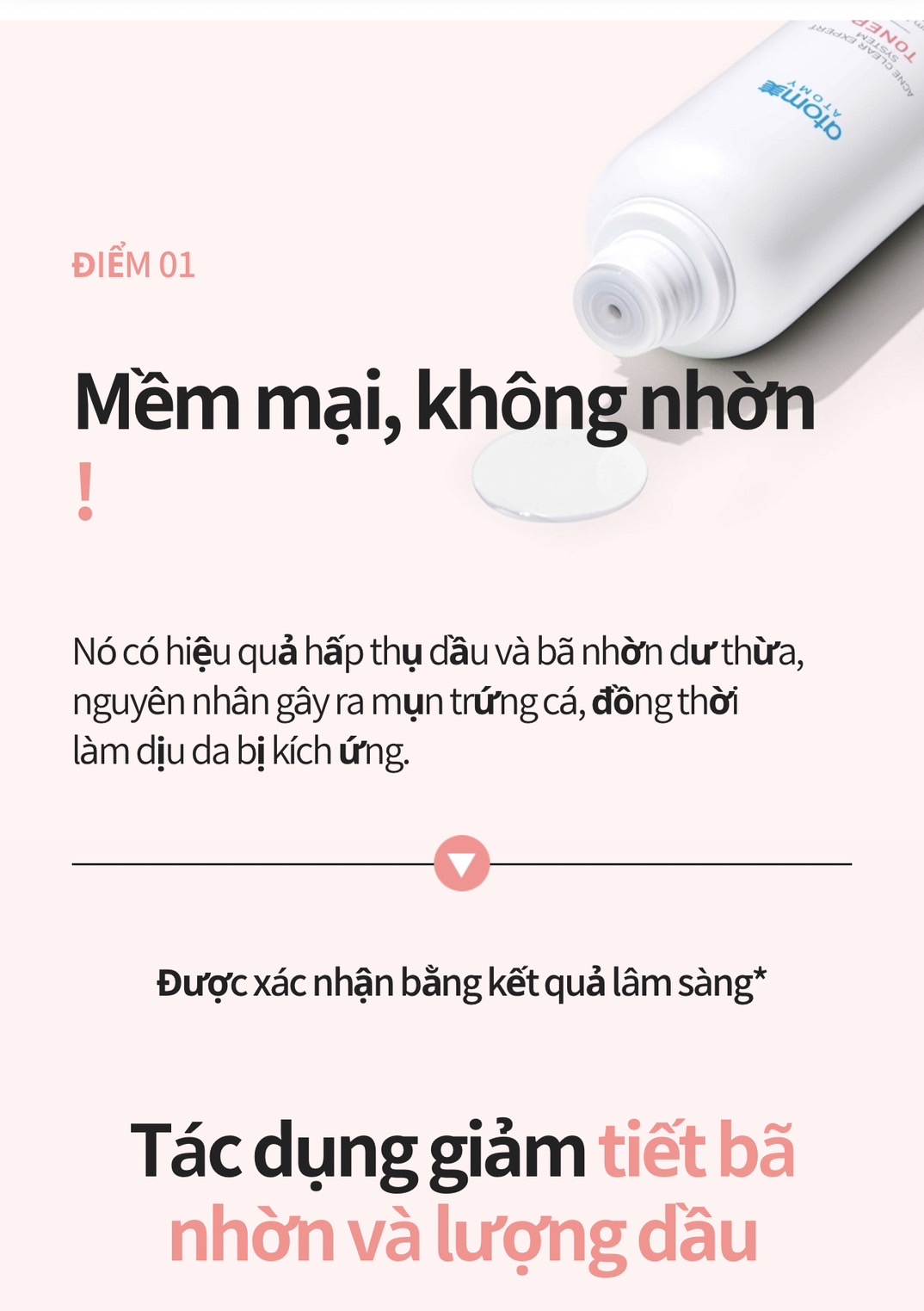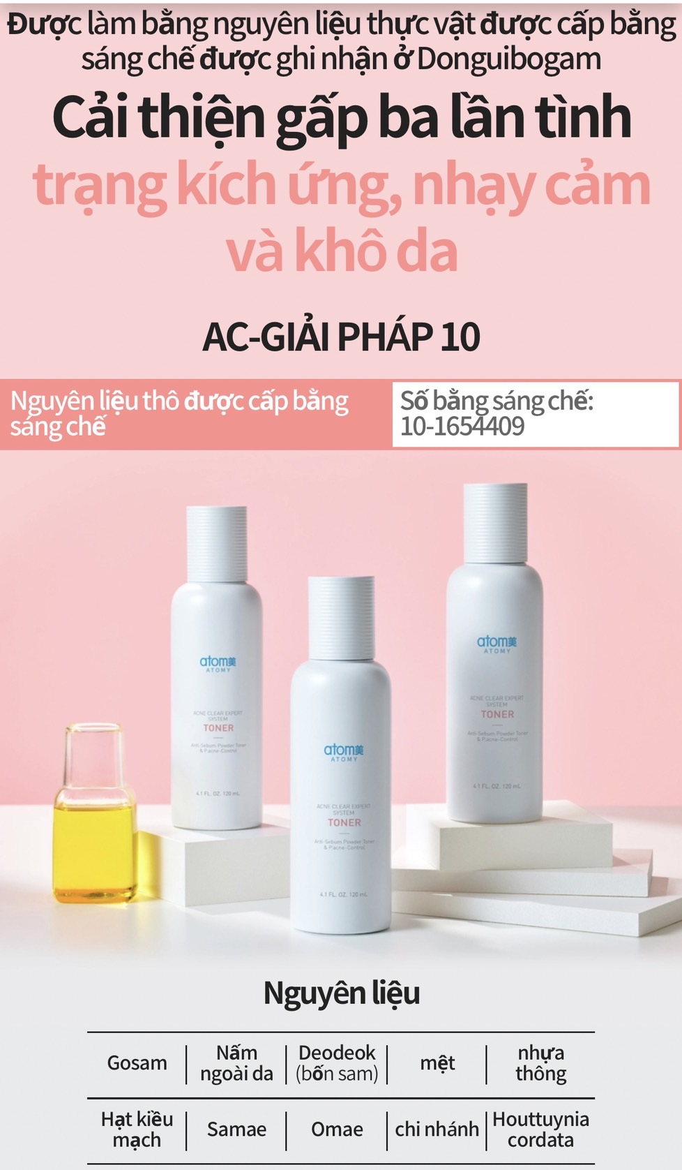- Lý do tại sao Atomy Acne Clear Expert System là một sản phẩm tuyệt vời là vì nó cung cấp một giải pháp cơ bản để chăm sóc mụn và sửa chữa da. Nó chứa bằng sáng chế hoạt chất và các chất tự nhiên. Và tác dụng của nó đã được thử nghiệm lâm sàng khác nhau.