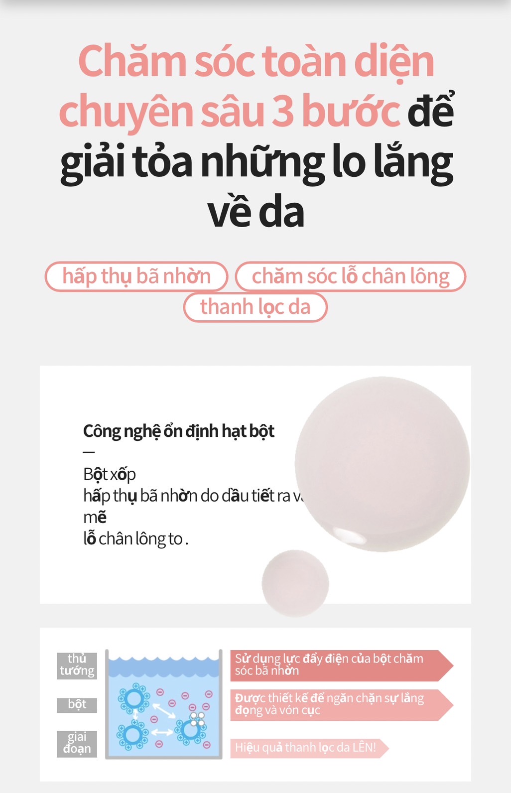 Công nghệ ổn định giúp kiểm soát bã nhờn của da, chăm sóc lỗ chân lông và thanh lọc da.
