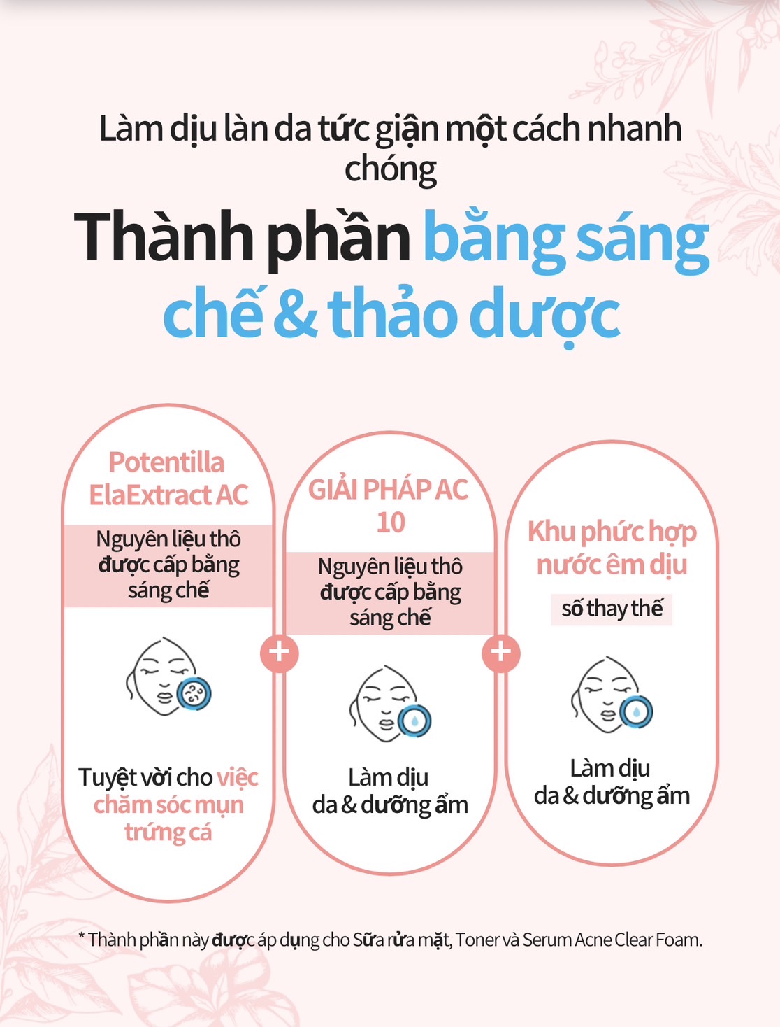 - Một giải pháp rõ ràng một cửa, Hệ thống chuyên gia trị mụn trứng cá nguyên tử.Từ sản phẩm dung dịch AC trước đó, chất tẩy rửa tạo bọt, nước dưỡng hoa hồng toner và serum tái tạo da được thêm vào cho sự ra đời mới của dòng Chuyên gia trị mụn 4 bước.