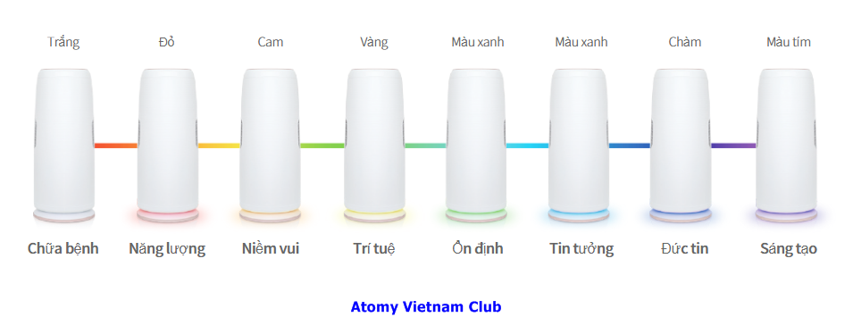 - Máy lọc không khí này có 8 màu sắc ánh sáng tương ứng với năng lượng của ánh sáng đó gọi là liệu pháp màu sắc
