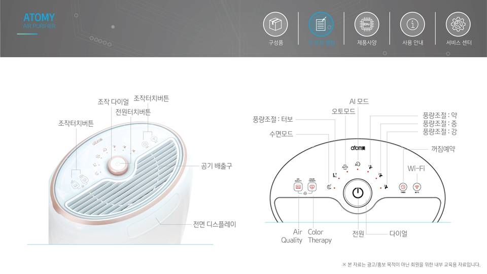 Máy lọc không khí Atomy xóa bỏ các nút bấm phức tạp và sử dụng giao diện đơn giản nhằm tối ưu hóa sự tiện lợi.