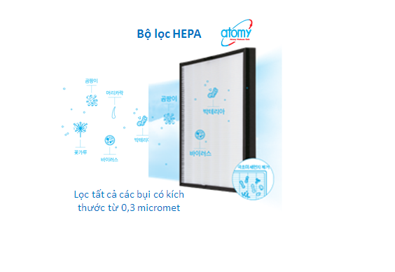 Máy lọc không khí Atomy thông minh giúp loại bỏ tất cả bụi bẩn kể cả các loại bụi cực mịn. Máy gồm 3 bước lọc: bộ lọc sơ bộ, lọc bằng than hoạt tính, bộ lọc HEPA