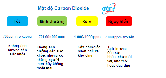 Máy lọc không khí Atomy có một cảm biến NDIR phát hiện nồng độ CO2 trong nhà và cho báo cho chúng ta biết tình trạng CO2 và biết khi nào cần thông gió.
