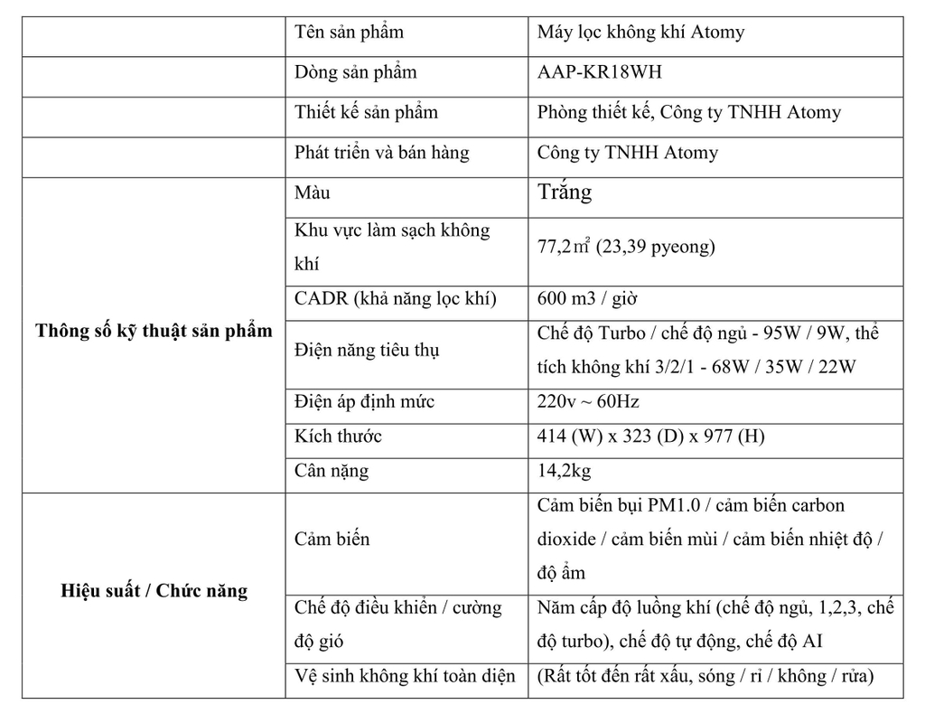 Atomy Air Purifier - Máy lọc không khí tự động thông minh Atomy