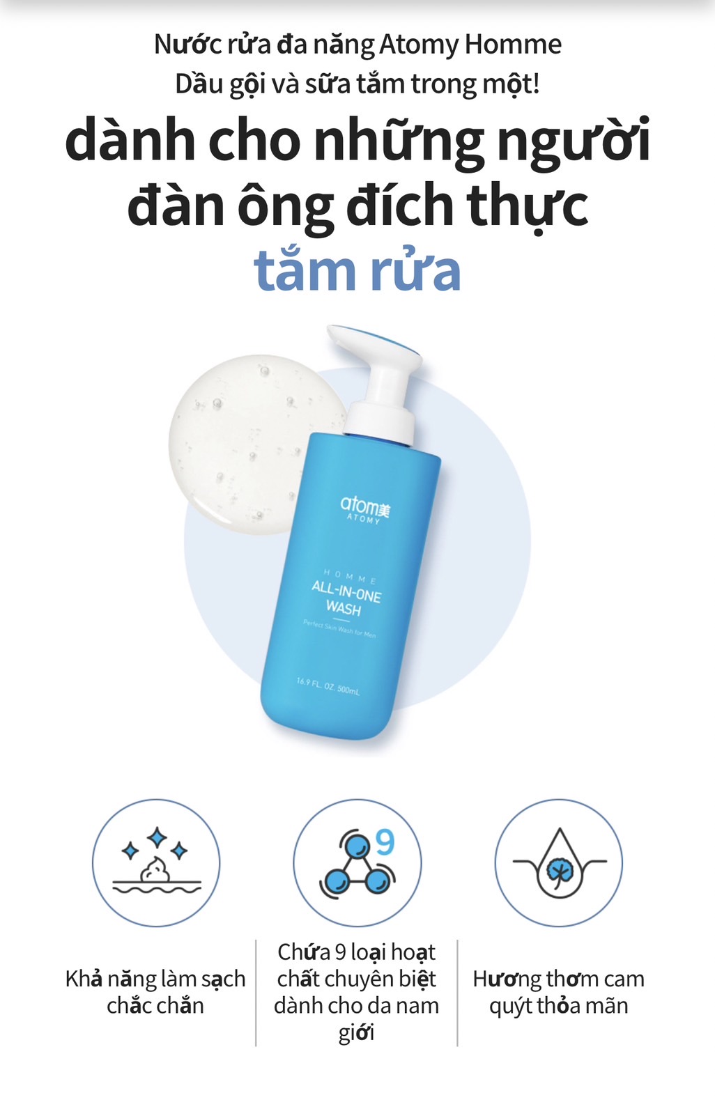 🥰🥰 Atomy All-in-one wash – Tắm và gội tất cả trong 1 dành cho nam.