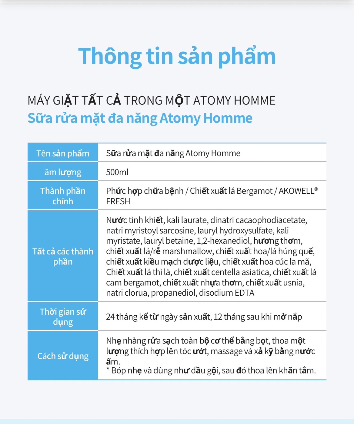 ✅✅ Atomy Homme All-in-One Wash giải quyết dầu gội và tắm trong 1 sản phẩm duy nhất mà vẫn đảm bảo hiệu quả.
