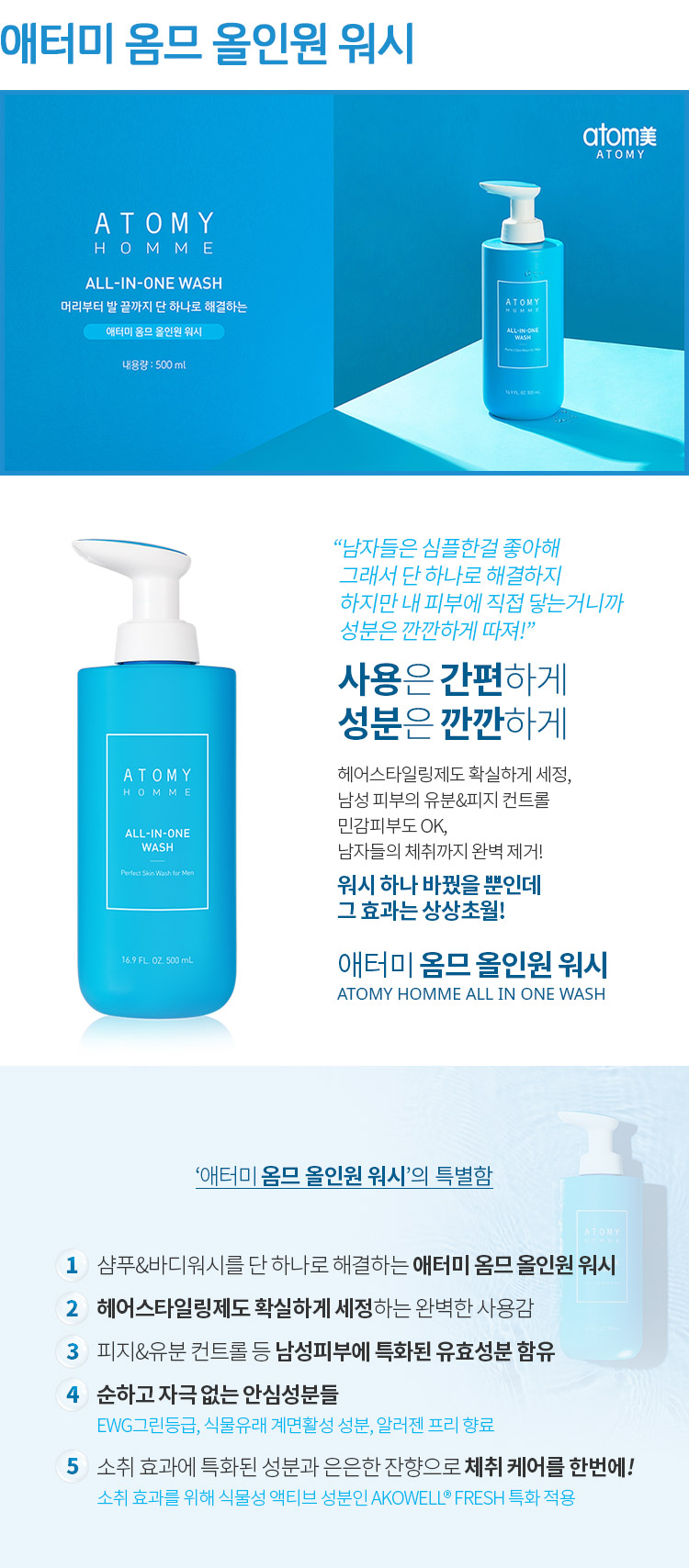 ✅✅ Atomy Homme All-in-One Wash giải quyết dầu gội và tắm trong 1 sản phẩm duy nhất mà vẫn đảm bảo hiệu quả.