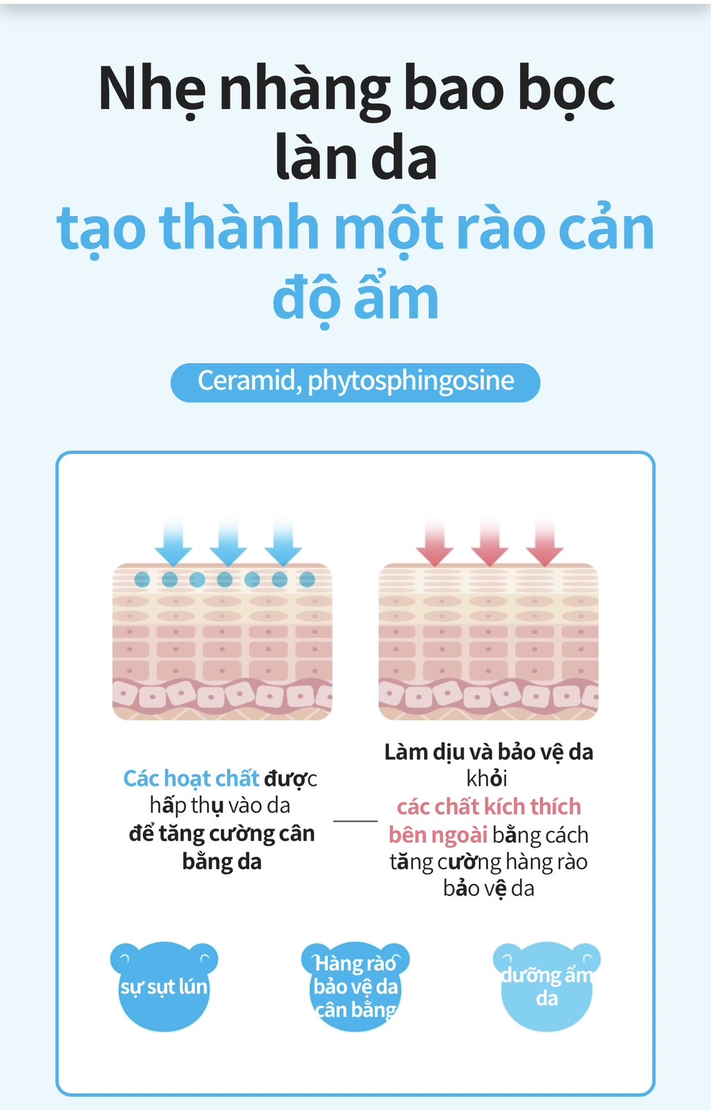 - Bao gồm các axit yếu, Dưỡng chất Ceramide, các chất làm sạch da đầu có nguồn gốc từ mía đường. Nhẹ nhàng làm sạch da đã bị kích thích do tác động của môi trường bên ngoài.