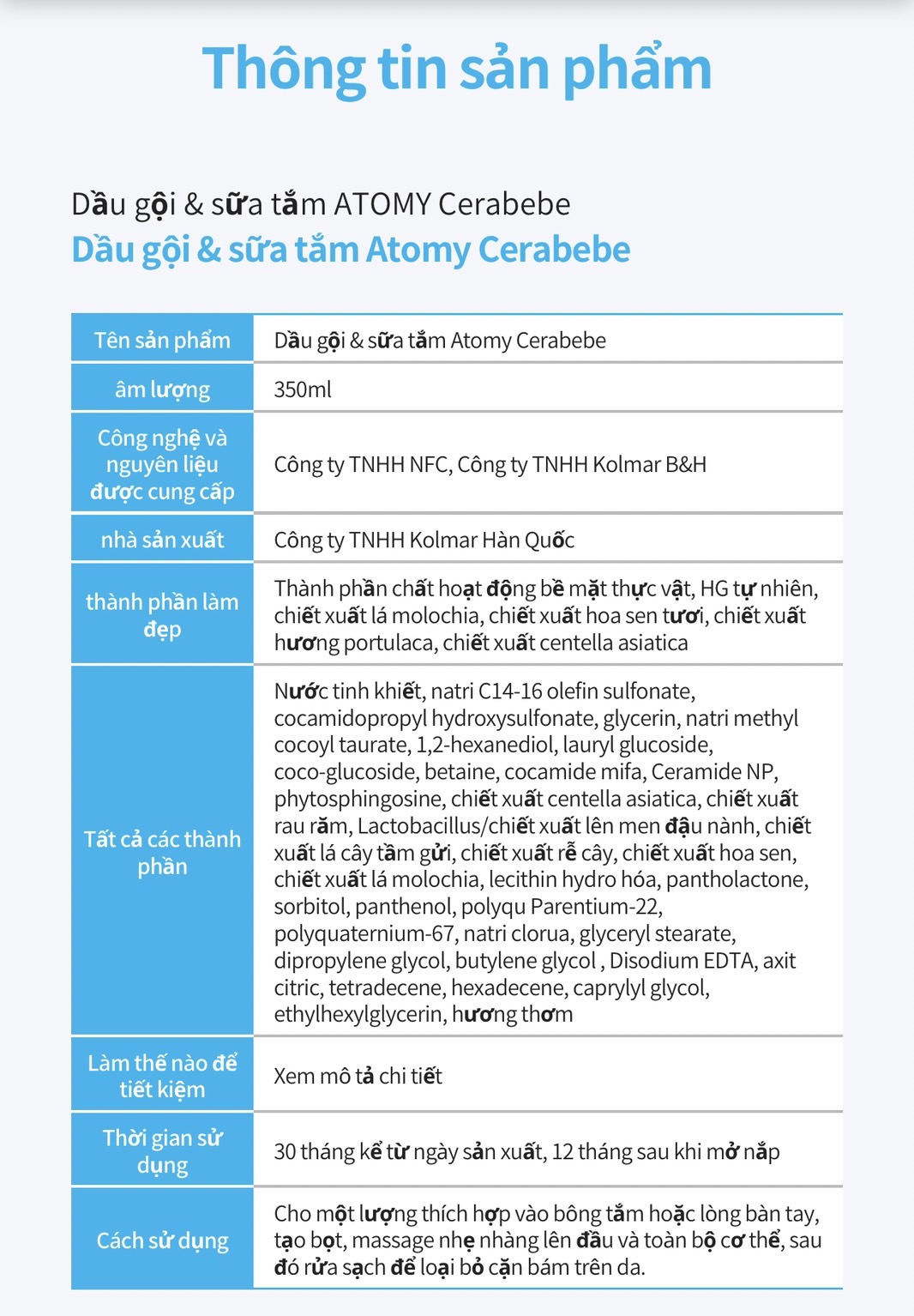 Atomy Cerabebe Shampoo & Body Wash – Sữa tắm gội cho bé