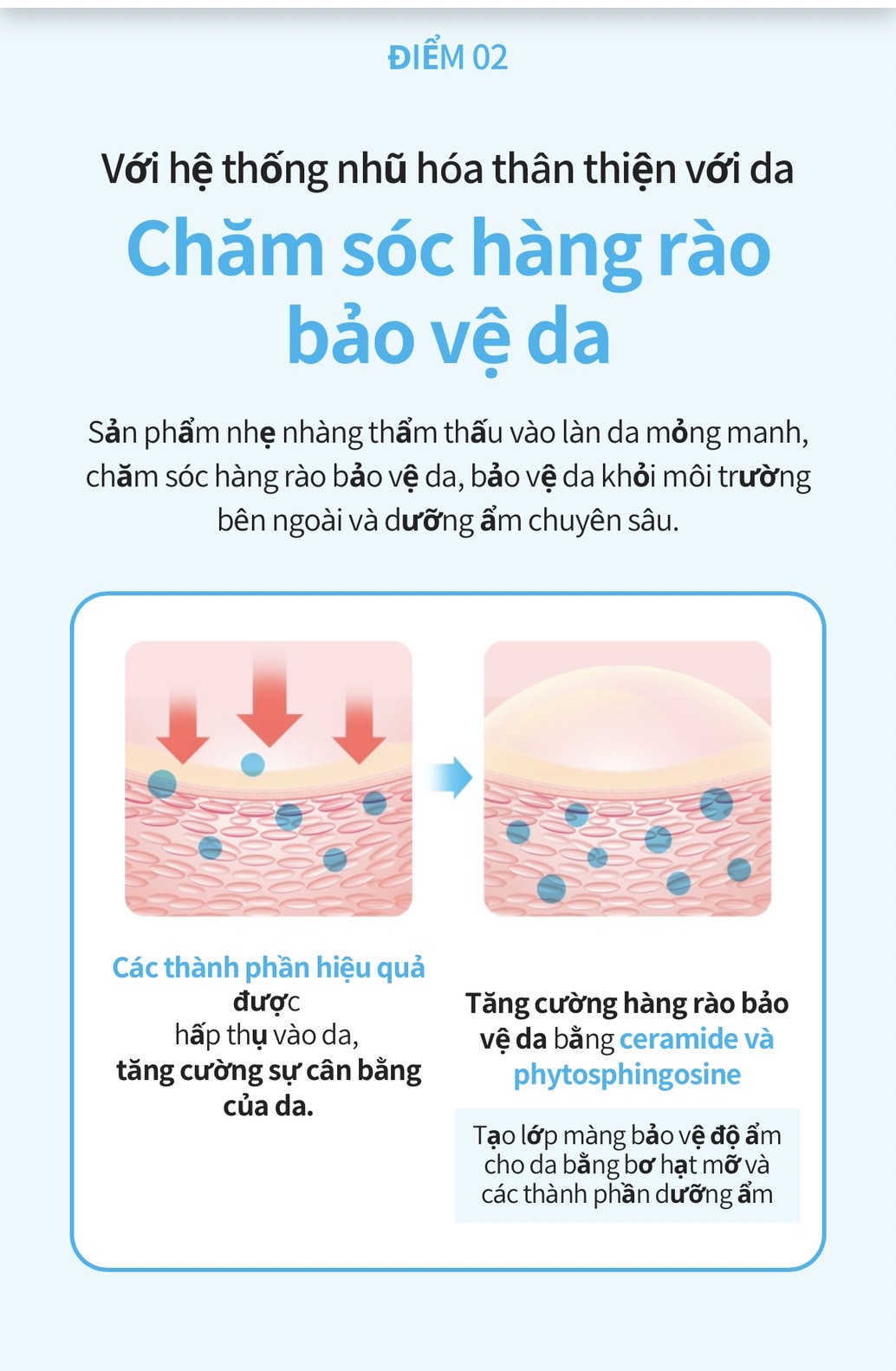 - Kem dưỡng ẩm chuyên sâu giúp bổ sung đầy đủ các dưỡng chất cho da kể cả da nhạy cảm và giúp phục hồi tình trạng da khoẻ mạnh.