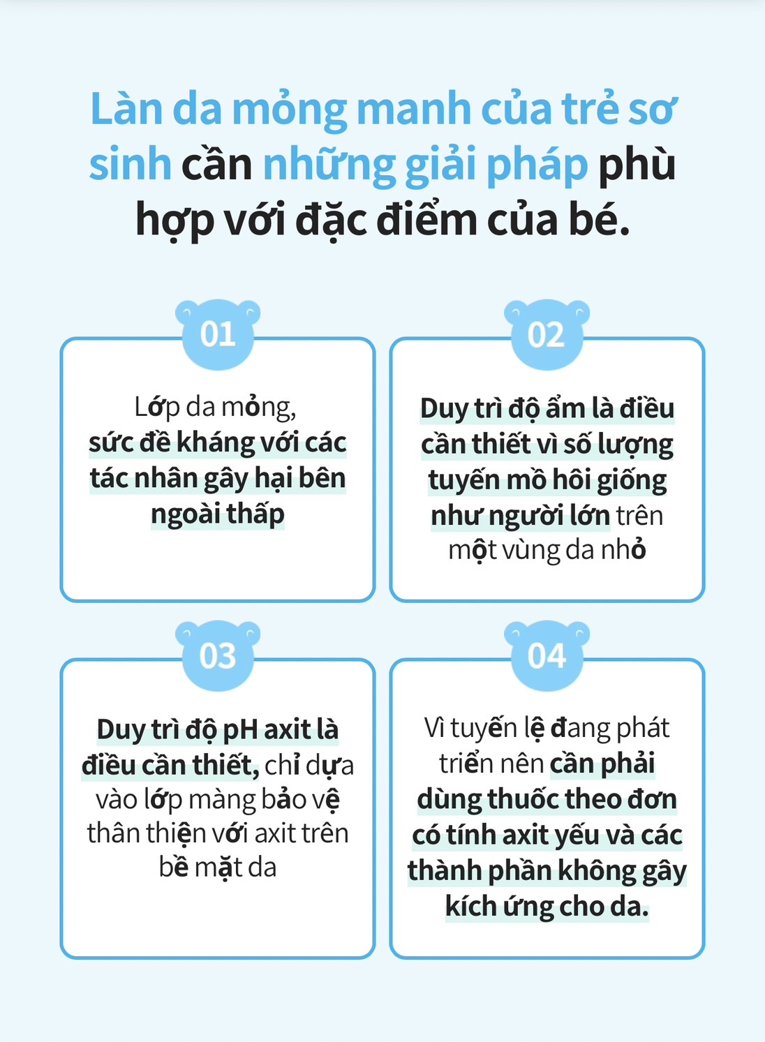 - Công thức giảm dị ứng được các chuyên gia lựa chọn các phương pháp an toàn cho trẻ sơ sinh và trẻ nhỏ. Nó cũng được làm giảm kích ứng da như Lecithin chiết xuất từ đậu nành được sử dụng thay cho chất nhũ hoá.