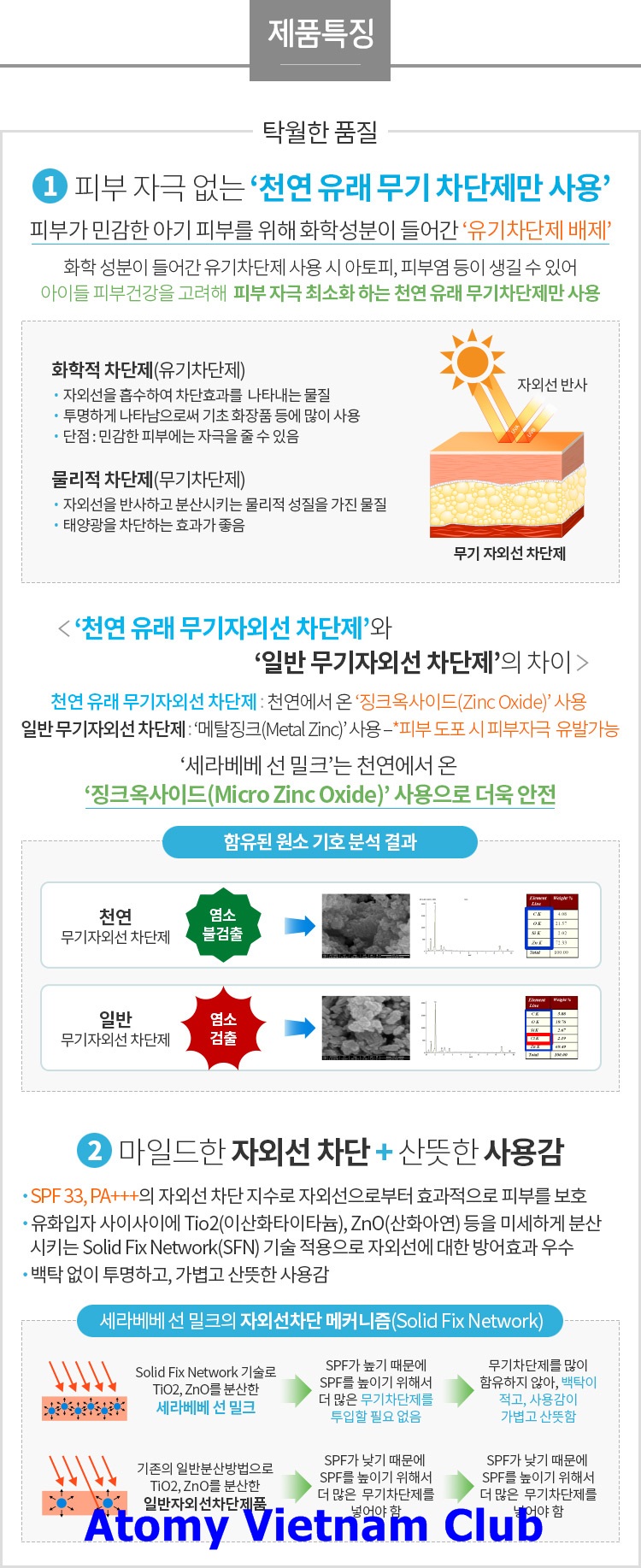- Khả năng chống nắng SPF 33 , PA+++ cũng phù hợp và an toàn cho trẻ hơn.