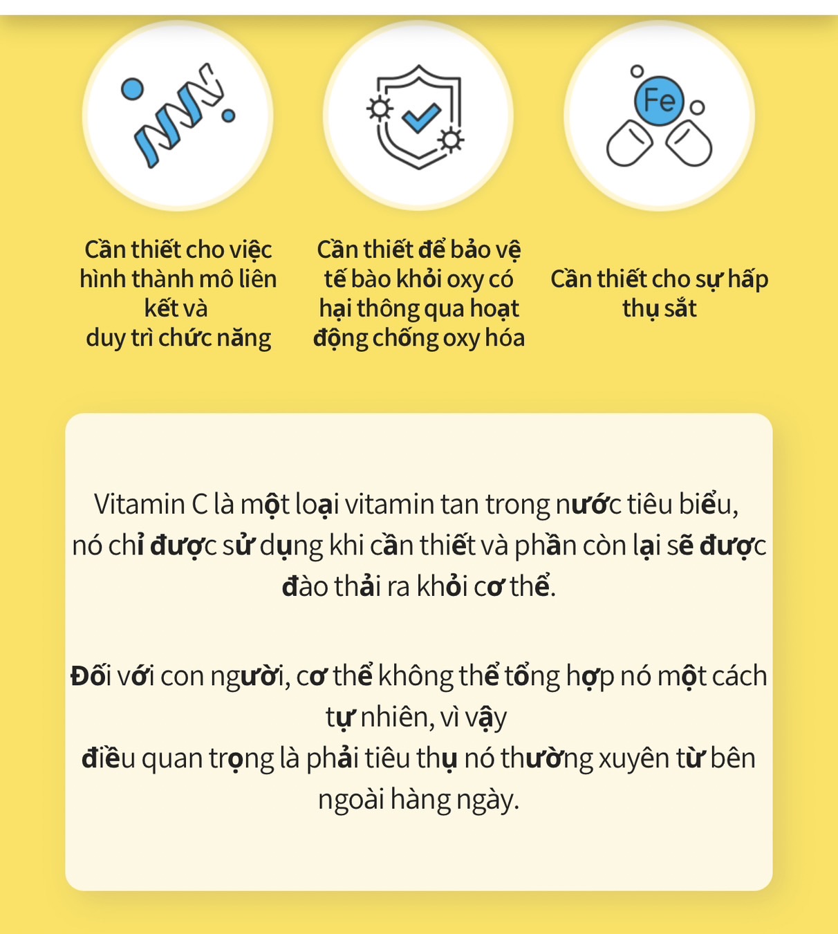 ● Vitamin C, chất dinh dưỡng hoà tan trong nước, được cơ thể hấp thụ và bất kỳ lượng dư thừa nào bị mất đi qua nước tiểu.