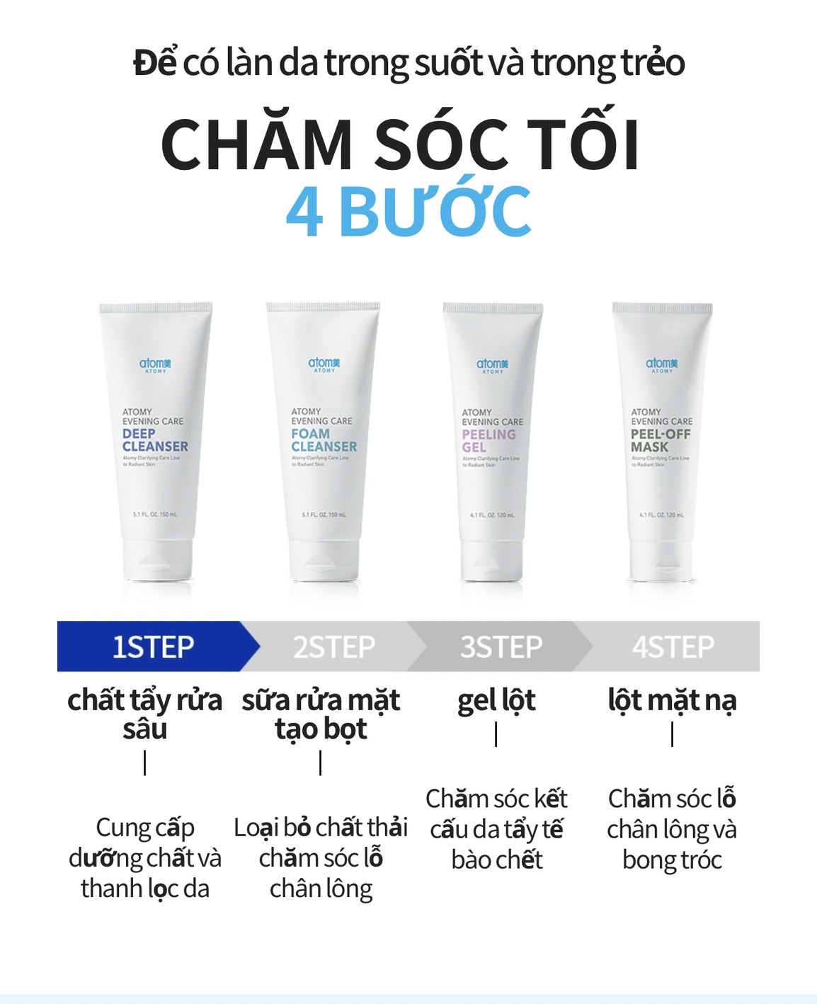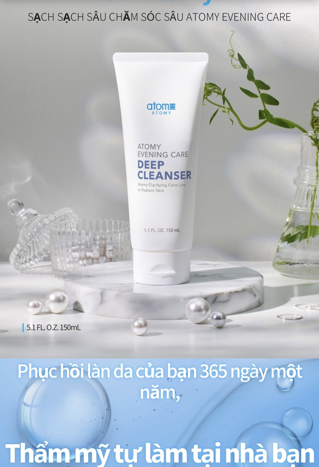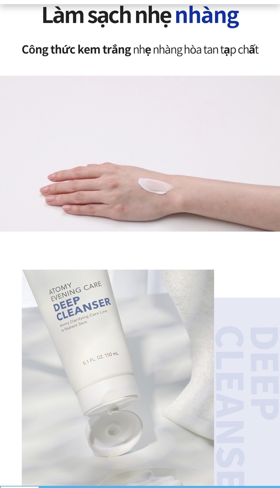 Tẩy trang dạng kem làm sạch bã nhờn lỗ chân lông (sp trong set 4 chăm sóc tại nhà) - Atomy Evening Care Deep Cleanser 150 ml - 애터미 이브닝 케어 딥 클렌저 - Атоми Ивнинг Кеар Очищение