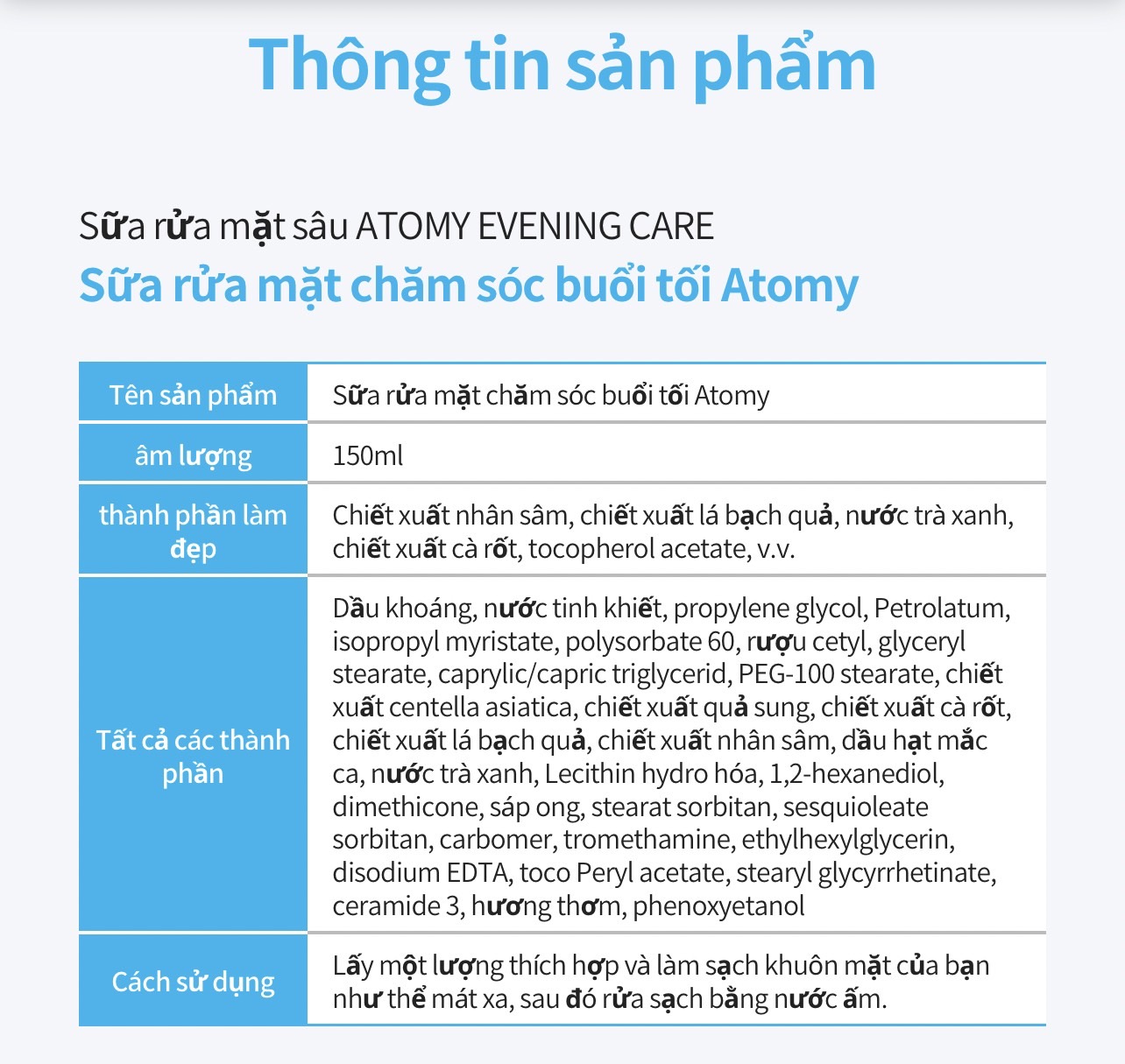 Atomy Evening Care Deep Cleanser : Sữa rửa mặt tẩy trang