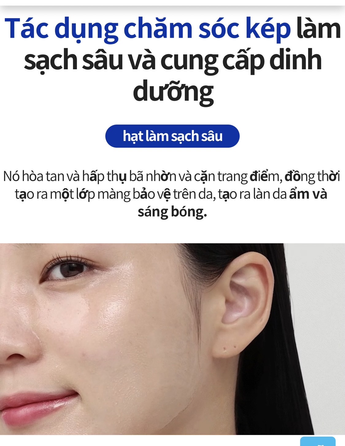 - Tác động kép: làm sạch và nuôi dưỡng da