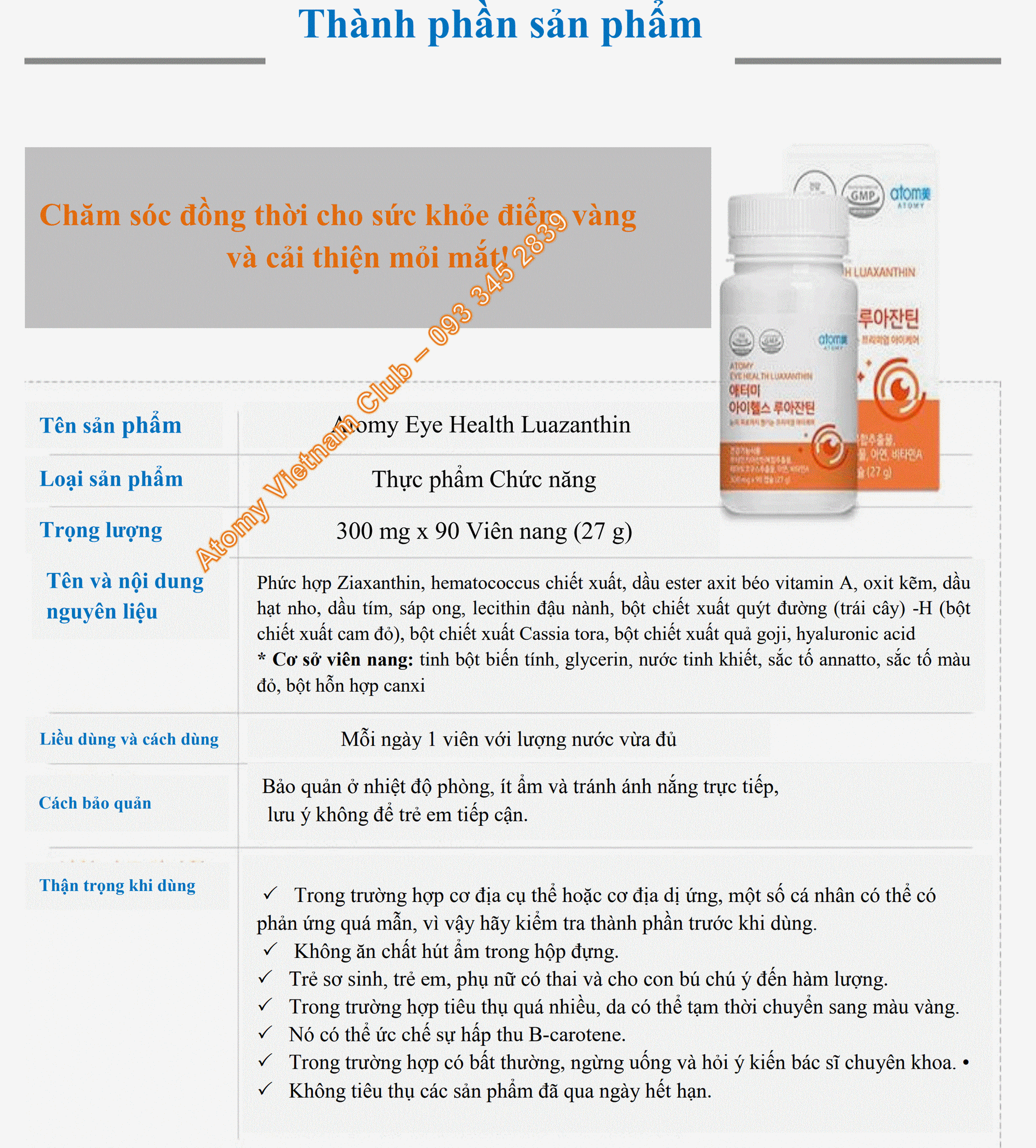 - Thành phần chức năng được Bộ Thực phẩm và An toàn Dược phẩm công nhận giúp cải thiện tình trạng mỏi mắt