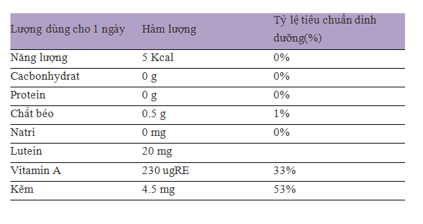 Lutein: Giúp duy trì mật độ sắc tố võng mạc có nguy cơ bị giảm do quá trình lão hóa, bảo vệ sức khỏe mắt.