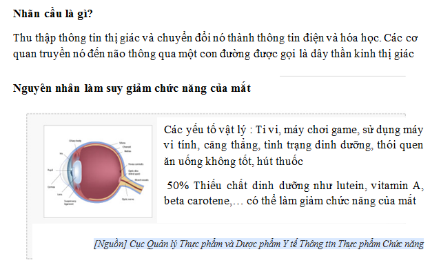 Dược phẩm bổ mắt 100% nguyên liệu thảo dược & hoa quả tươi nguyên chất.