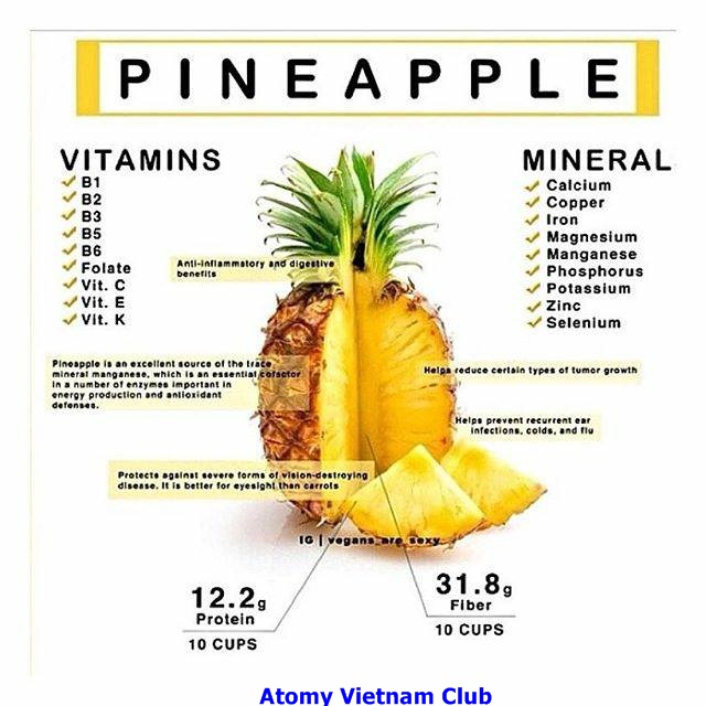 Thành phần: Vitamnin B5 (calcium pantothenate), Vitamin B1 (thiamine hydrochloride), Vitamin H (Biotin), Qủa dứa (pineapple), Chất tạo ngọt tự nhiên không chứa Calo (erythritol) gồm: [Cải ô rô (chicory dietary fiber) La hán quả (luo han guo, đường ăn kiêng)], maltodextrin, Chất xơ tự nhiên hoà tan (polydextrose), Tinh bột ngô (maltodextrin), Hỗn hợp Enzyme gồm (α-Amylase, lipase, protease, Cellulase, Lactase, maltodextrin), tribasic calcium phosphate, DL-malic acid, Đu đủ (papaya), Enzyme trong quả dứa (bromelain).