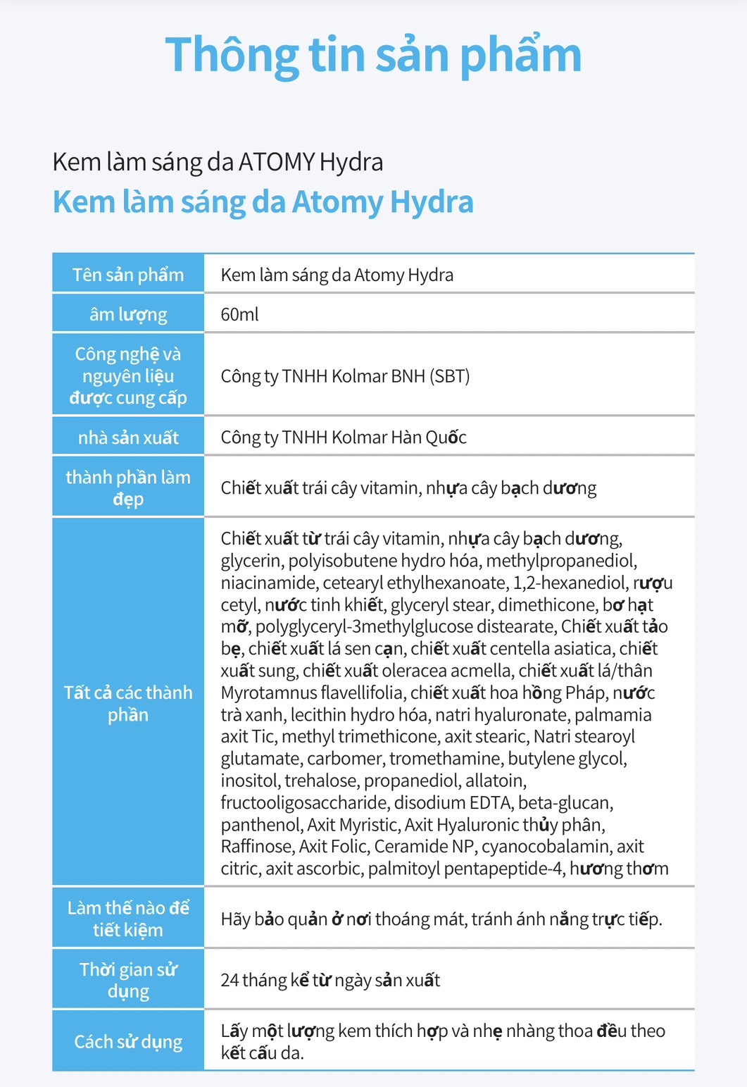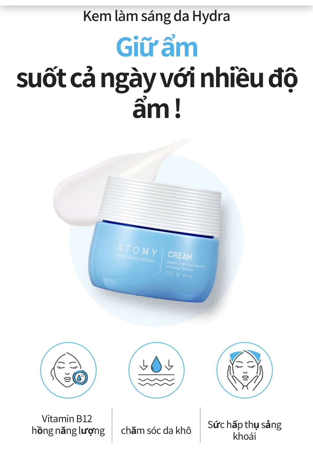 Kem dưỡng ẩm và làm trắng da tự nhiên từ Vitamin B12 chiết xuất hắc mai biển 60ml - Atomy Hydra Brightening Cream 애터미 하이드라 브라이트닝 크림 - Атоми Гидра Сияние Крем