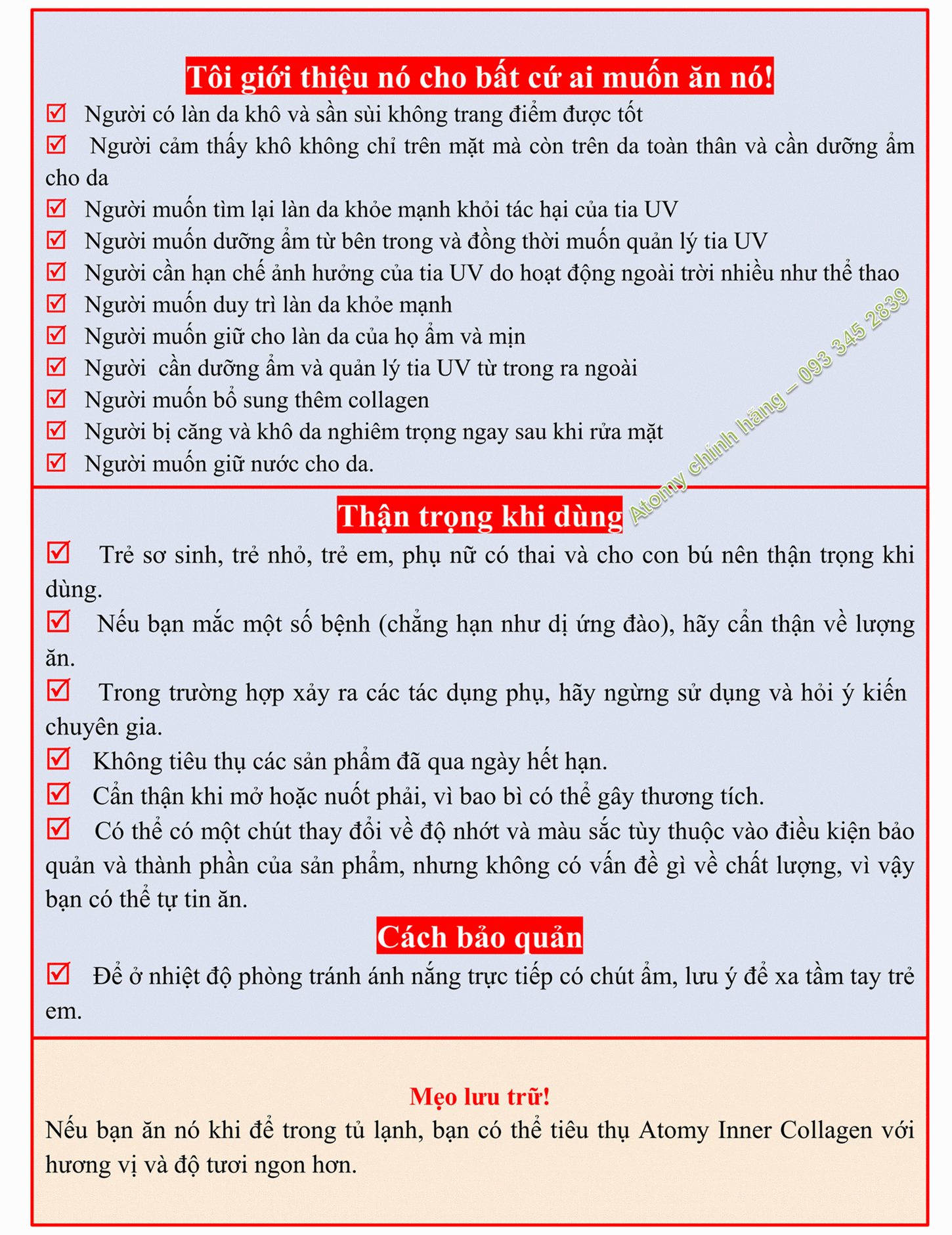 Sản phẩm Atomy inner Collagen đã được kiểm nghiệm tính hiệu quả của mình