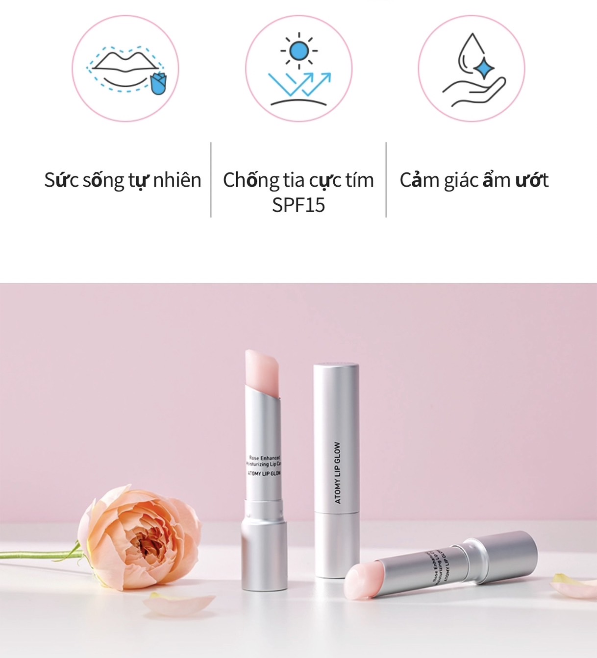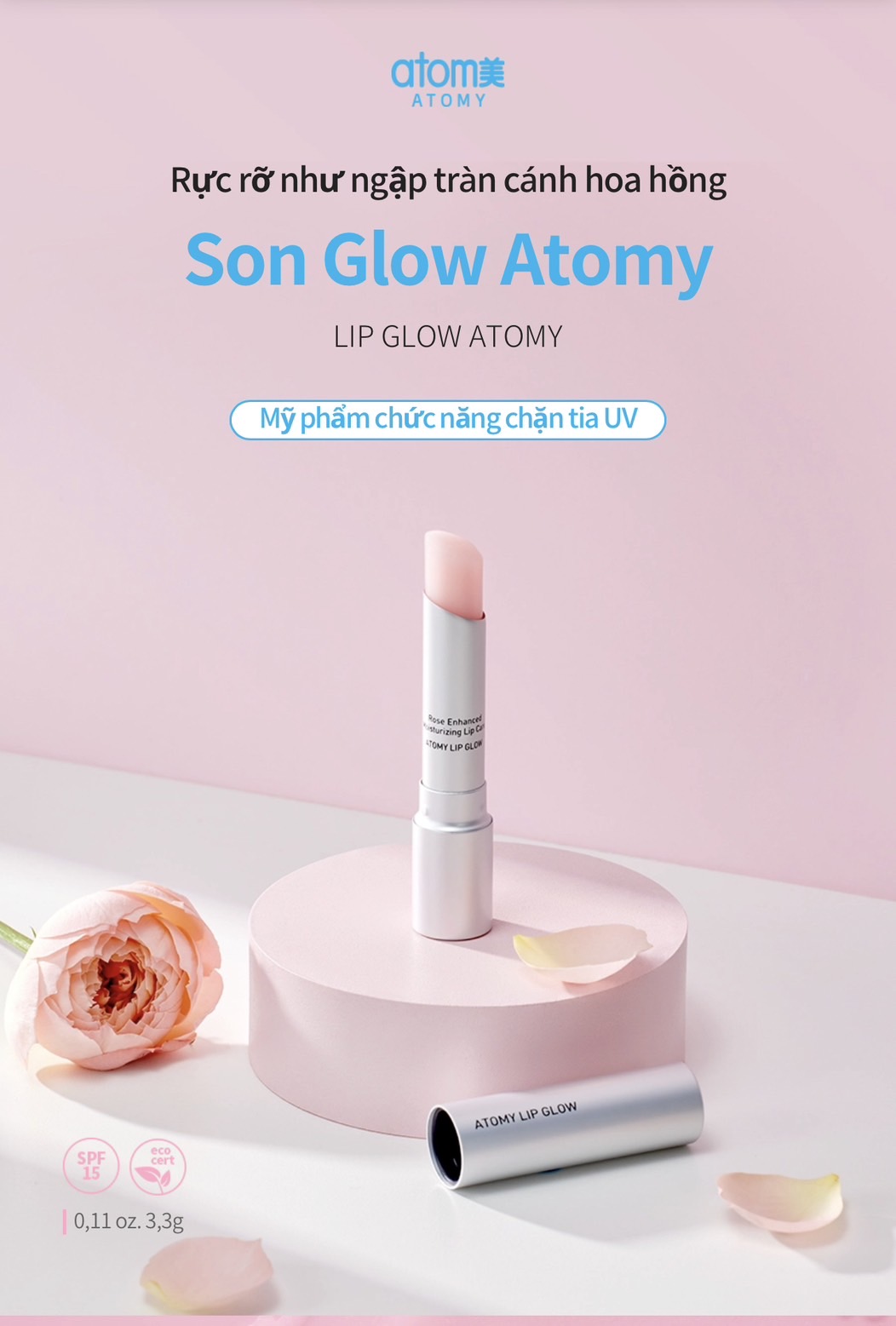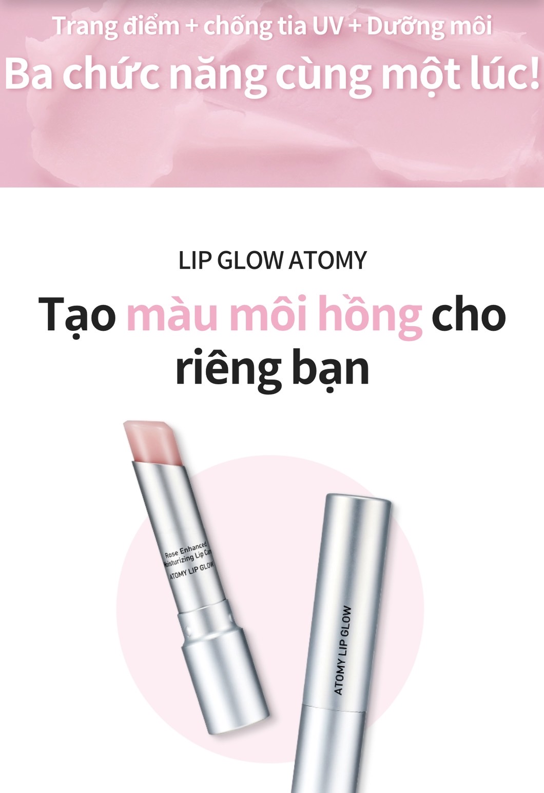 - Son dưỡng môi Atomy Lip Glow cung cấp đầy đủ độ dưỡng ẩm giúp đôi môi luôn căng mọng, tràn đầy sức sống với các dưỡng chất từ thiên nhiên.