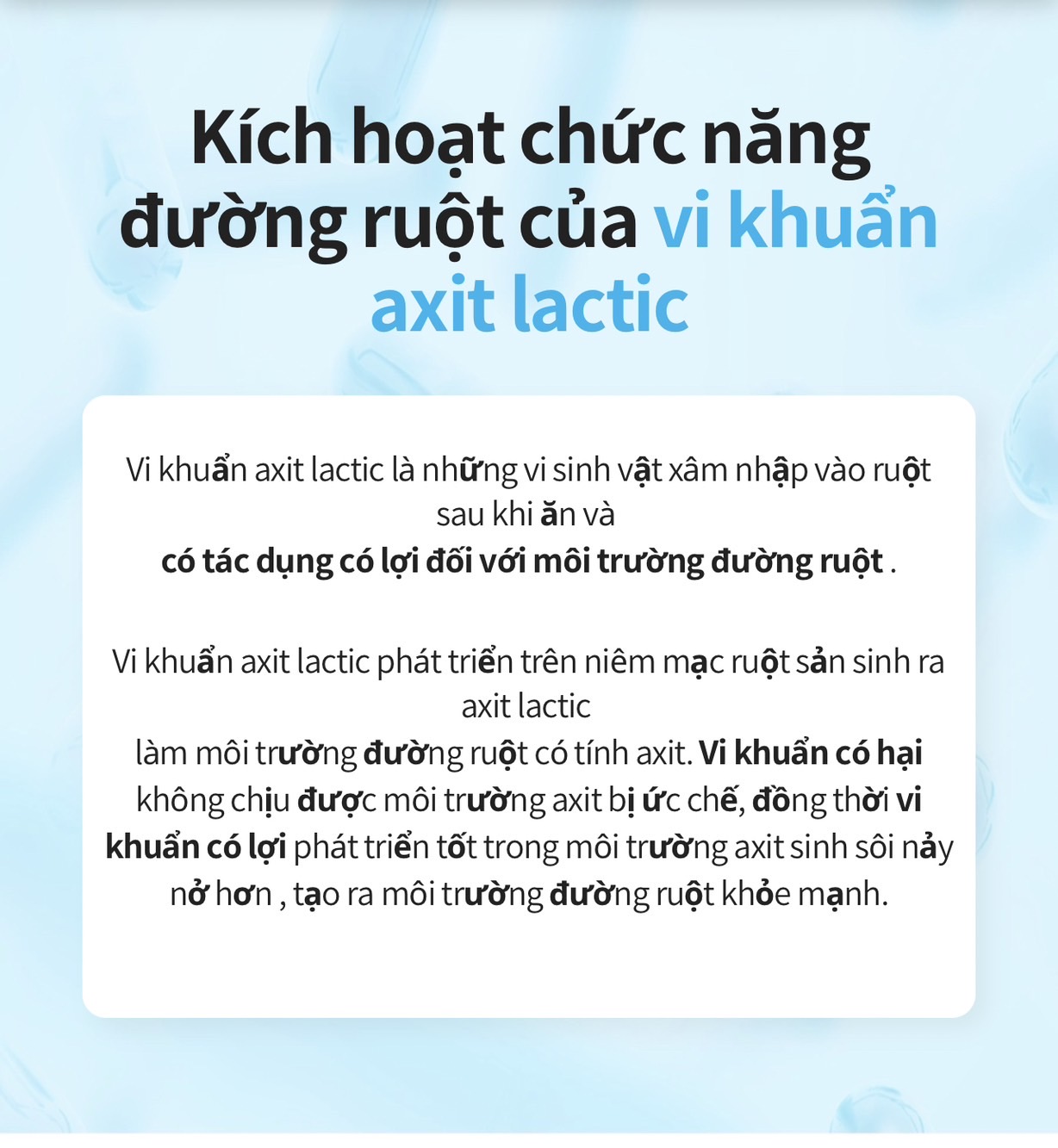 - Lactobacillus giúp: phân huỷ thức ăn, Hấp thụ chất dinh dưỡng, Chống lại bệnh nhiễm trùng đường tiêu hóa, Đau bụng ở trẻ sơ sinh, Viêm loét đại tràng, Hội chứng ruột kích thích, Nhiễm helicobacter pylori, gây loét…
