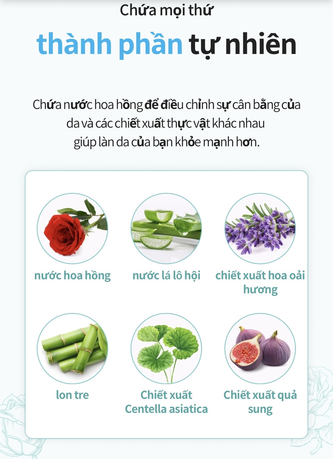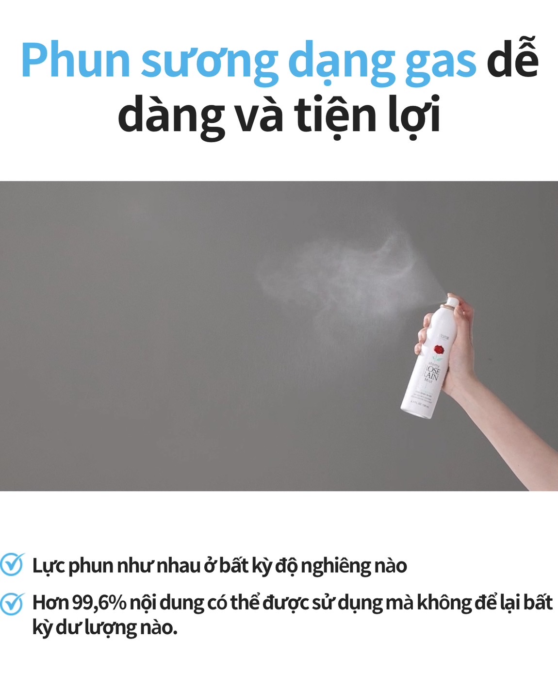- Xịt khoáng dạng phun sương chứa 20% nước tinh chất hoa hồng tự nhiên, có tác dụng kép của Toner, Essence và Nutrition cung cấp độ ẩm mang đến làn da mềm mại, tươi mát trong thời gian dài.