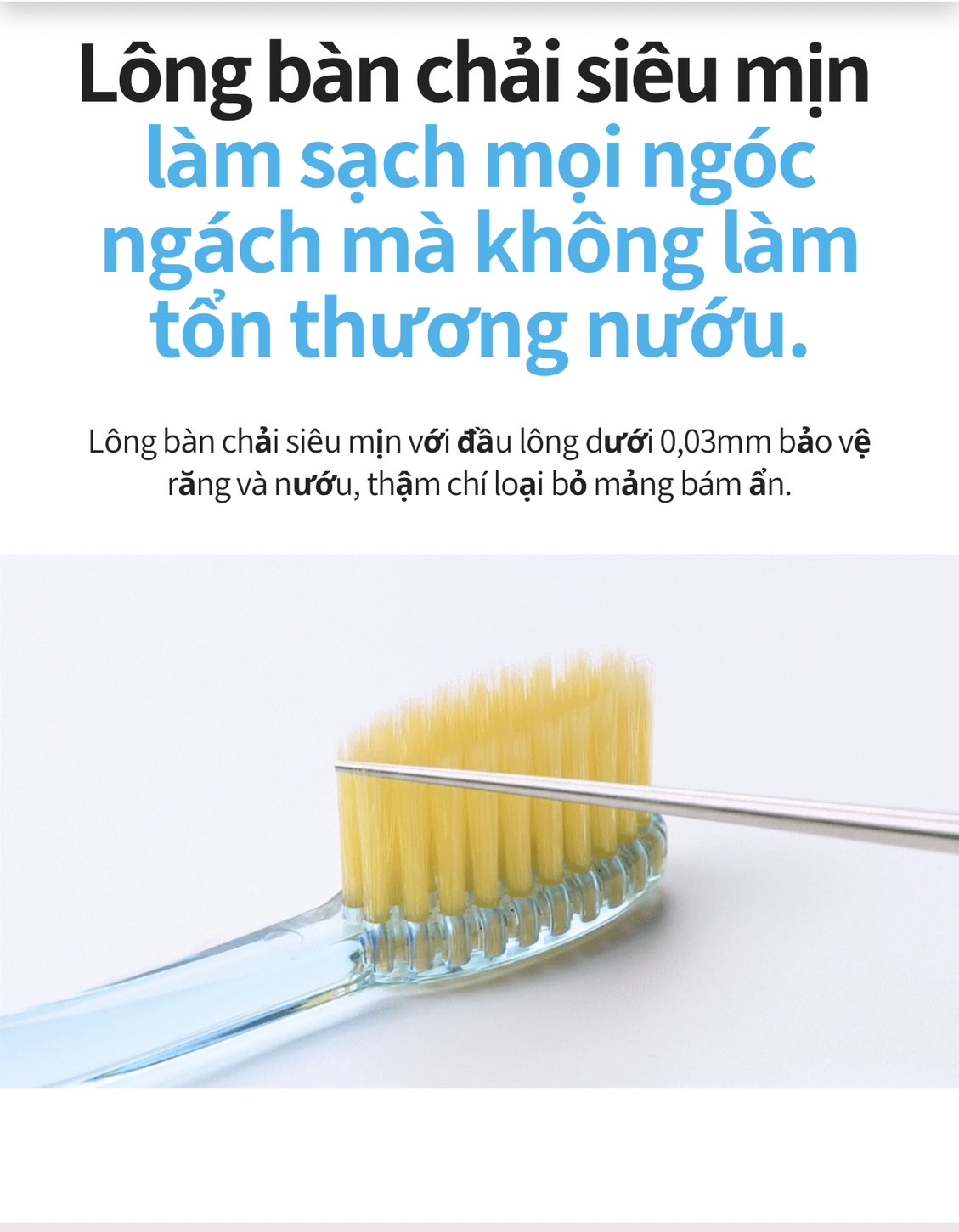 - Đặc biệt lông bàn chải được phủ một lớp bụi vàng 99,9% qua công nghệ xử Lí nano có tác dụng tự động kháng khuẩn bảo vệ răng, nướu giúp giữ sạch bàn chải cả khi không sử dụng .
