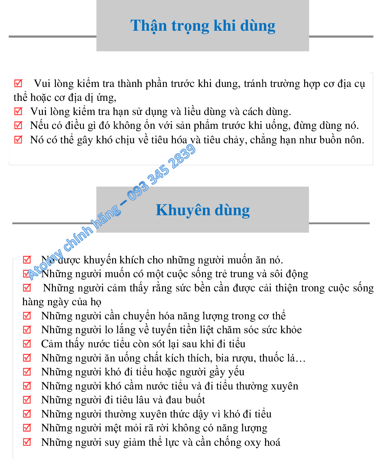 Hỗ trợ điều trị bệnh phì đại tiền liệt tuyến lành tính. Cải thiện rõ rệt các triệu chứng: tiểu khó, tiểu gắt, tia nước tiểu yếu, đi tiểu đêm nhiều lần ở Nam giới trung niên trở lên.
