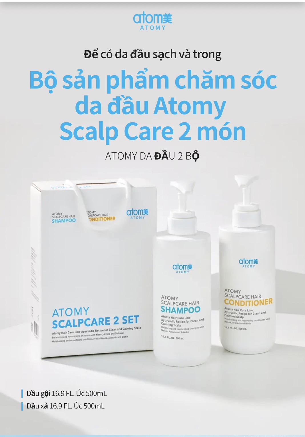 Atomy Scalpcare 2 Set – Bộ sản phẩm dầu gội - dầu xả chuyên trị gàu