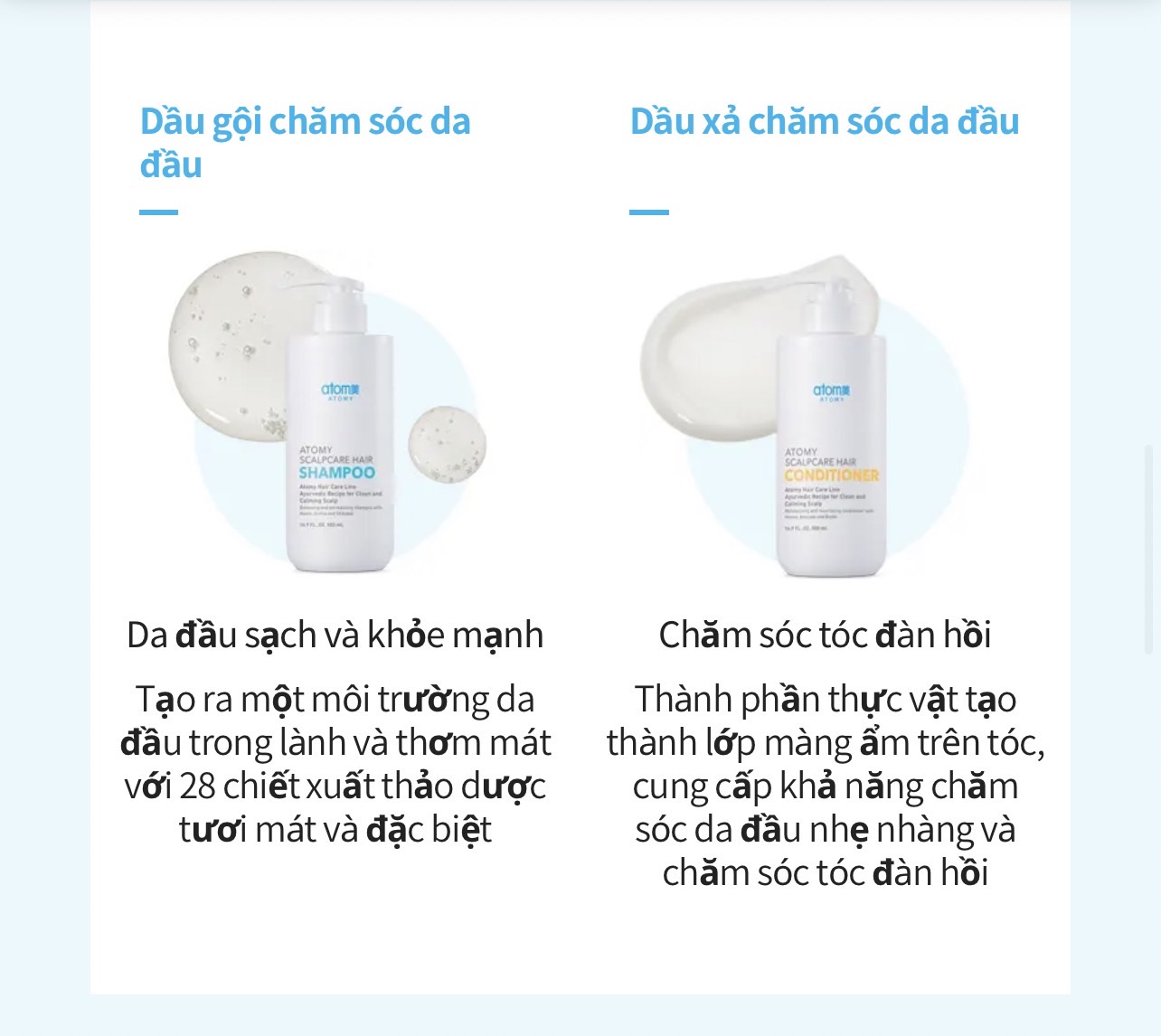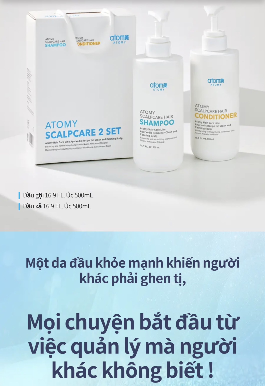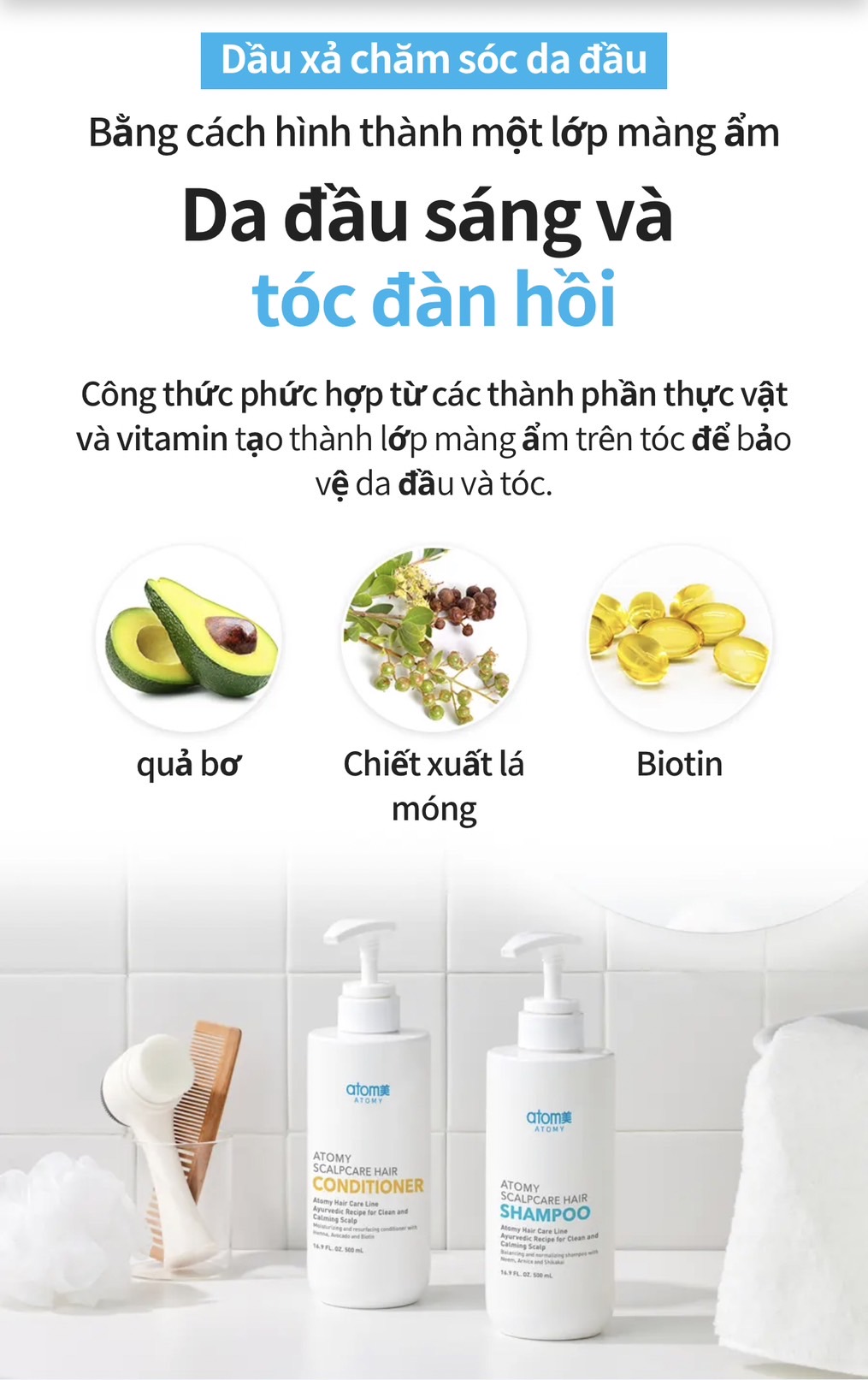 - Kết hợp với dầu gội ATOMY SCALPCARE SHAMPOO để đạt hiệu quả cao nhất trong việc điều trị gàu mãn tính , gàu lâu năm, nấm da đầu , ngứa da đầu và triệu chứng gãy rụng & trẻ ngọn .