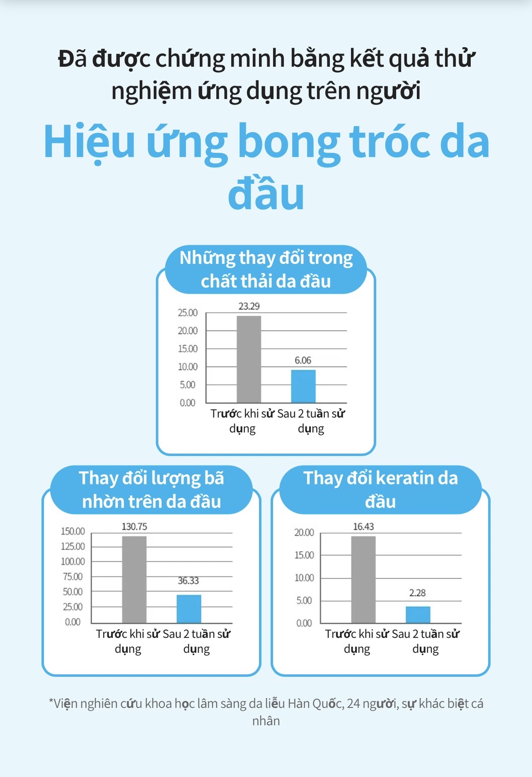 - Qua kiểm nghiệm thực tế cho thấy, sử dụng ATOMY SCALPCARE SHAMPOO trong 2 tuần có kết quả giảm rõ rệt tình trạng gàu, bã nhờn và các chất bẩn bám trên da đầu và rất ít trường hợp có gàu trở lại.