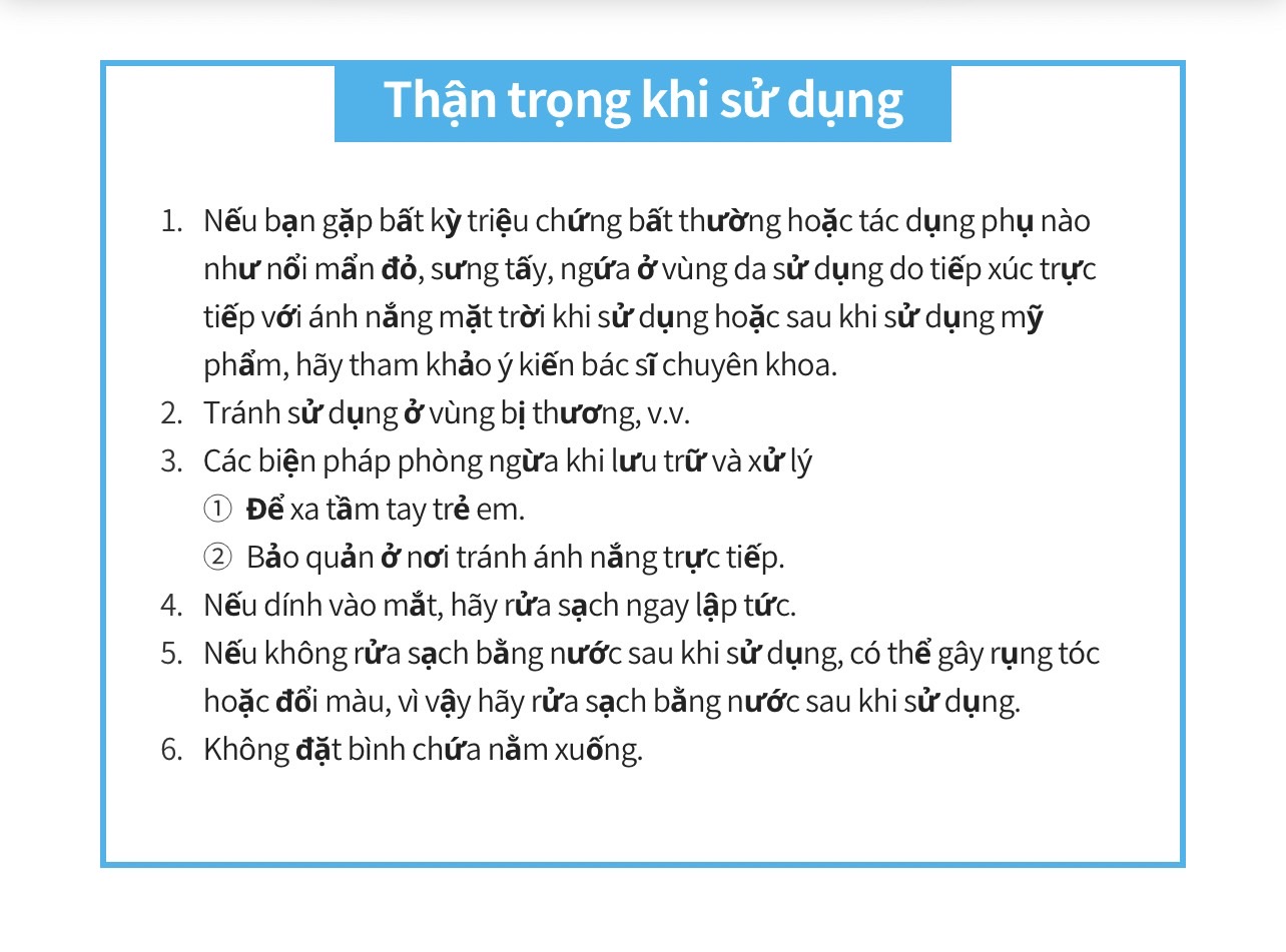 - Chỉ sử dụng ngoài da, tránh vào mắt. Trường hợp, bị chảy vào mắt thì rữa sạch bằng nước ấm.