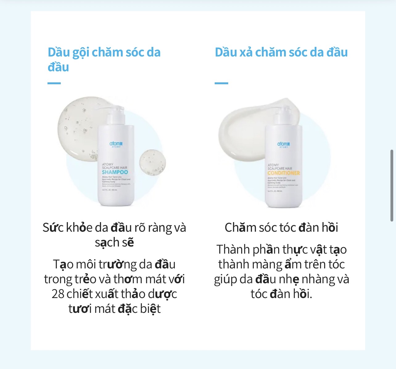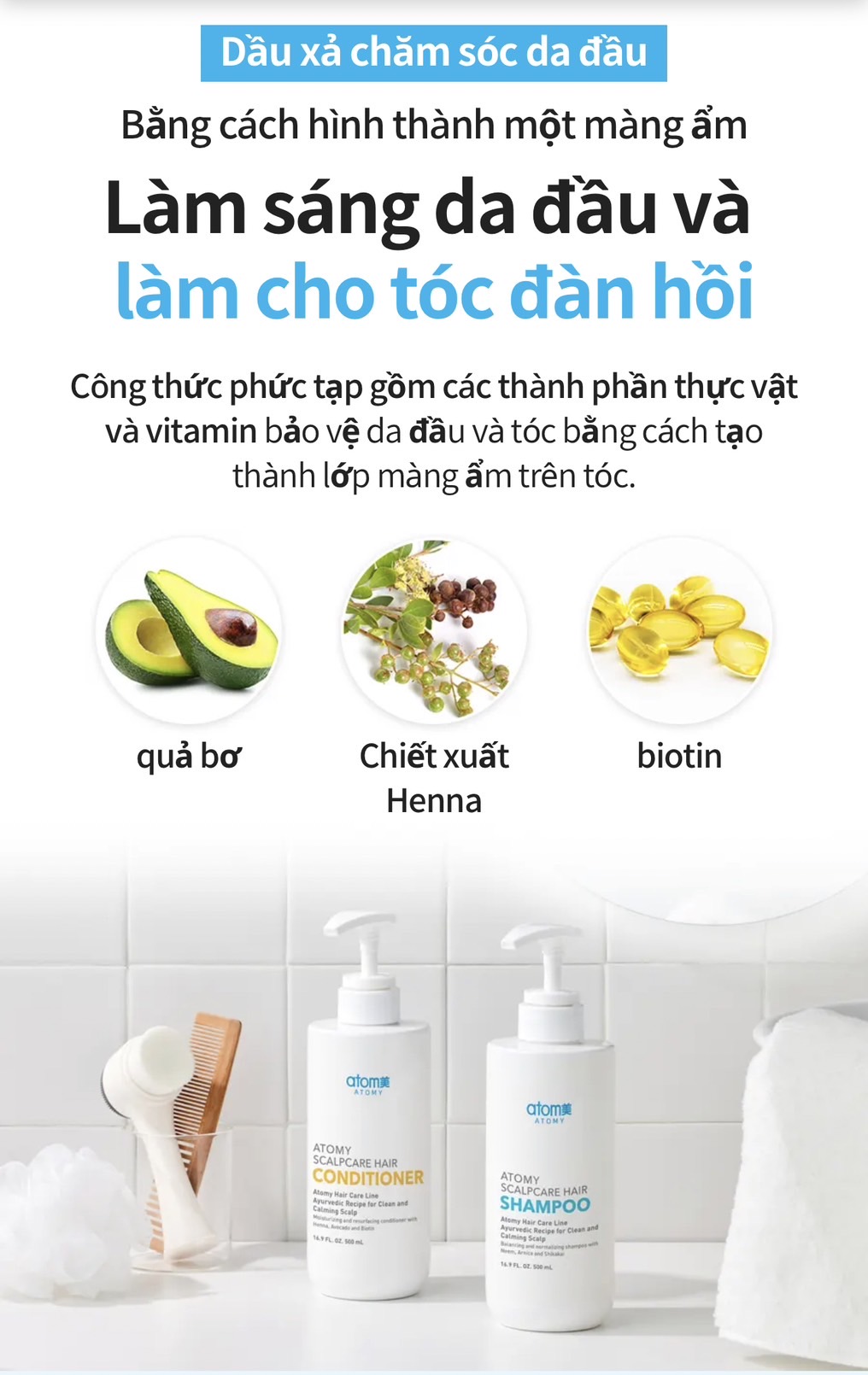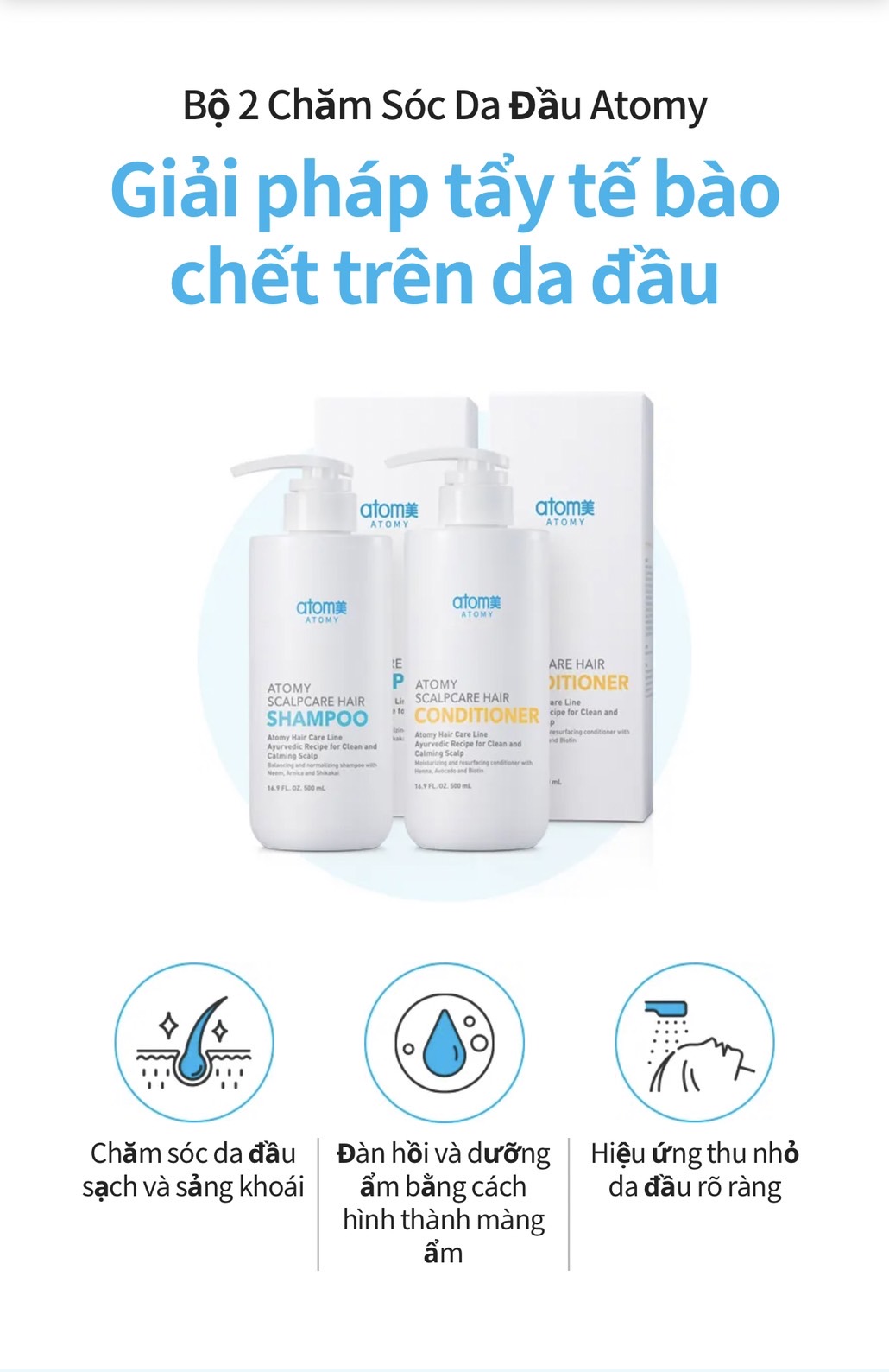 - Kết hợp với dầu gội ATOMY SCALPCARE SHAMPOO để đạt hiệu quả cao nhất trong việc điều trị gàu mãn tính , gàu lâu năm, nấm da đầu , ngứa da đầu và triệu chứng gãy rụng & trẻ ngọn .