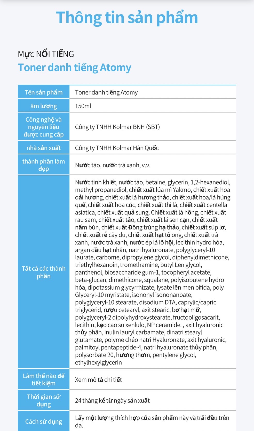 Atomy Skin Care System The Fame Toner – Nước dưỡng hoa hồng