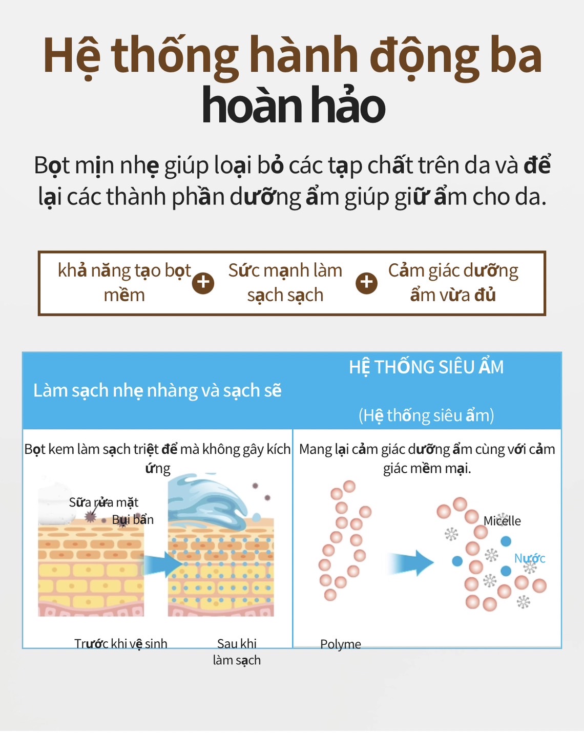 Hệ thống siêu dưỡng ẩm phân chia hợp chất cao phân tử thành các siêu phân tử và nước bổ sung hoàn hảo các chất dinh dưỡng cho da duy trì sức sống cho da, giúp loại bỏ bụi bẩn, mồ hôi và tế bào chết một cách nhẹ nhàng. Sản phẩm có hương thơm tự nhiên từ hoa chùm ngây mang lại cho cơ thể và tinh thần thoải mái.