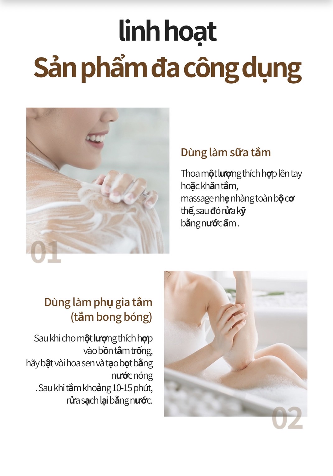 Các vitamin thiết yếu sẽ được cung cấp cho làn da mỏng manh chống lại các tác nhân oxy hóa, các yếu tố độc hại trong môi trường. Ngoài ra, Sữa tắm Atomy có khả năng tạo ra nhiều bọt mịn làm sạch sâu và diệt khuẩn hiệu quả.