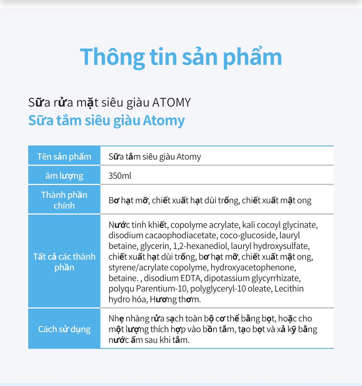 Atomy Ultra Rich Body Wash – Sữa tắm siêu giàu chất dưỡng ẩm