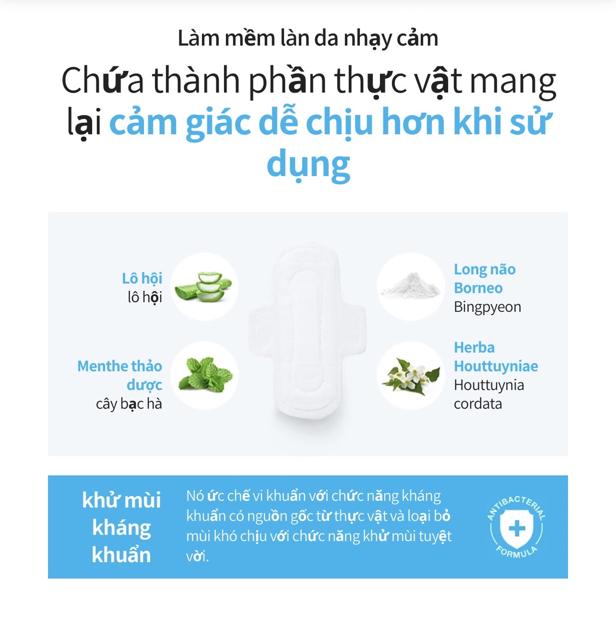 - Là loại băng vệ sinh được thiết kế vật liệu đặc biệt kết hợp với phương pháp y học phương Đông tạo sự thoải mái khi vận động đồng thời các thành phần thảo dược tự nhiên tiêu diệt hiệu quả các vi khuẩn gây hại.