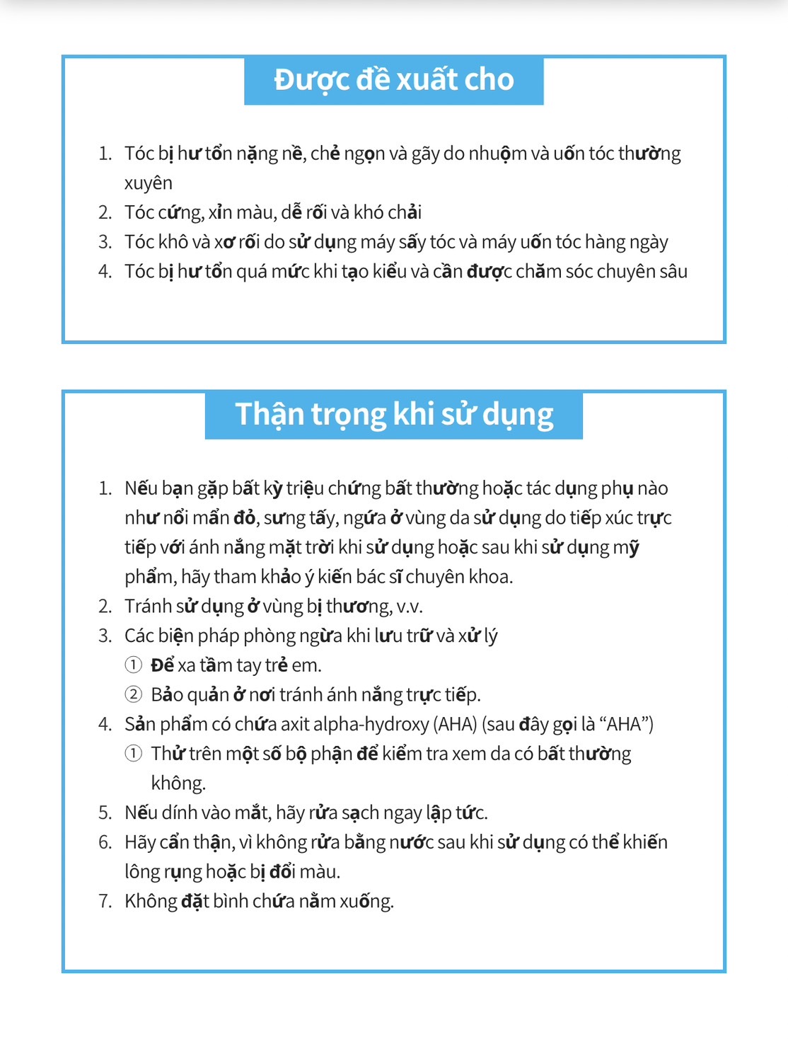 1. Dầu gội chuyên dùng Protein: Lấy một lượng thích hợp trên tóc ướt, nhẹ nhàng gội đầu và da đầu bằng cách tạo bọt như thể xoa bóp đều, Gội kỹ lại bằng nước sạch.